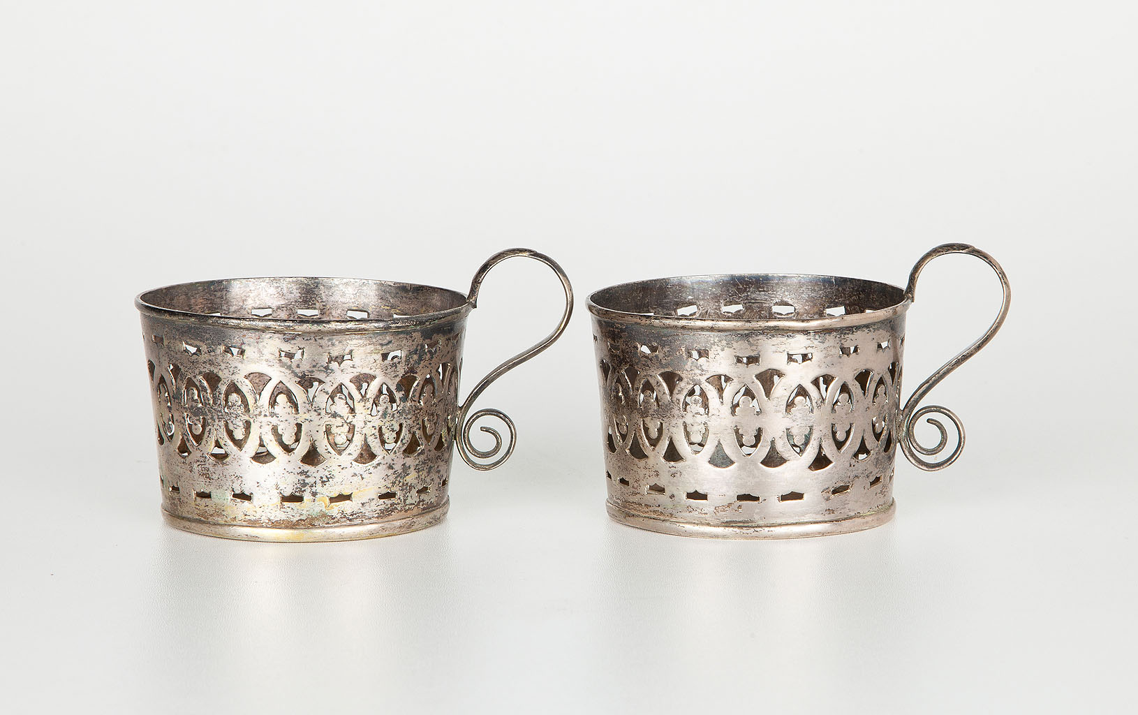 W formie walcowatych, ażurowych koszyczków z esowatym, taśmowym uszkiem.