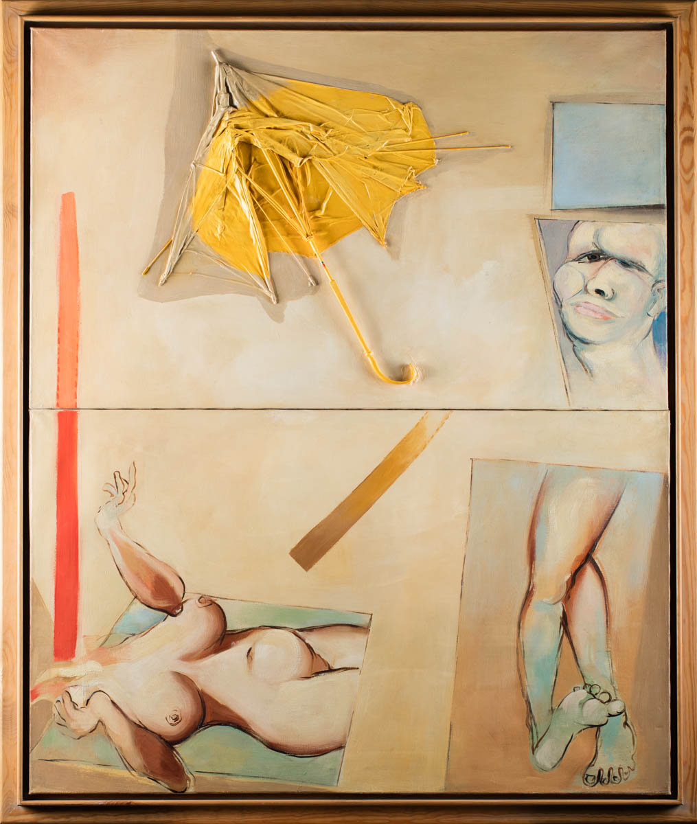 W oferowanej pracy Ambalaż: parasol i postacie z 1967 roku zdeformowanemu parasolowi towarzyszą zniekształcone sylwetki, znajdujących się pod nim postaci ludzkich. Dzięki temu zabiegowi parasol, przedmiot prosty, zdegradowany odzyskiwał swoje pierwotne znaczenie, tym razem już nie w rzeczywistości a w obrębie dzieła malarskiego.