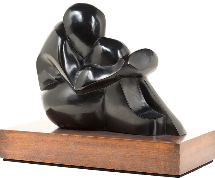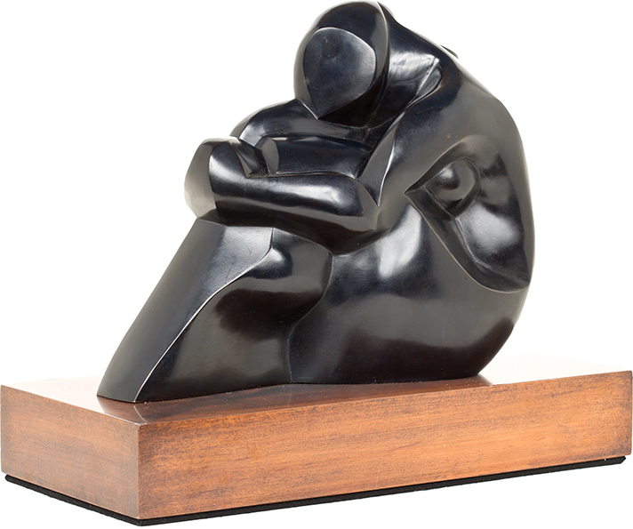 Oferowany akt zdaje się chować przed widzem. To postać, która umyka przed jego spojrzeniem innych, chowa się w sobie jakby niechętna do bycia obiektem i do bycia oglądaną. Akt ten ma w sobie coś z ambiwalentnego stosunku artystki do ciała. Z jednej strony potrzebę jego eliminacji w „poważnej” sztuce, zgodnie z unistycznymi założeniami męża Kobro – Władysława Strzemińskiego. Z drugiej zaś – niemożność ucieczki od ciała, która to ucieczka jest sprzeczna z naturą kobiety. Katarzyna Kobro z wielkim oddaniem towarzyszyła Strzemińskiemu nie tylko w trudnej codzienności obarczonej kalectwem artysty ale również w jego twórczych działaniach – tych teoretycznych i praktycznych. Całkowite odrzucenie cielesności jakim charakteryzowało się działanie Strzemińskiego, teoria rytmów czasoprzestrzennych dążąca do narzucenia rzeźbie praw logiki w myśl postulatu o jej jedności z przestrzenią – stało to niejako w opozycji do wewnętrznego głosu artystki, która właśnie w cielesności upatrywała ucieczki od bolesnej rzeczywistości i burzliwego związku. Akty Kobro są poniekąd zwierciadłem jej podejścia do samej siebie, milczącą wypowiedzią o ciele niekochanym, odrzuconym, nie otrzymującym spełnienia. Prezentowana praca została przez samą artystkę odlana w dwóch egzemplarzach gipsowych. Pierwszy egzemplarz został podarowany Muzeum Narodowemu w Łodzi. Wiadomo, że w 1990 na podstawie umowy Muzeum Sztuki w Łodzi z Galerią Franki Berndt w Paryżu powstały odlewy w brązie sygnowane przez odlewnię Clementi, o czym w swoich wspomnieniach opowiada córka Katarzyny Kobro – Nika Strzemińska. Według wszelkich danych znajdowały się one u następcy Franki Berndt, Alaina Anceau we Francji. Z drugiego egzemplarza gipsowego, który artystka podarowała przyjaciółce Franciszce Jackiewiczowej został zrobiony odlew brązowy, a następnie wraz z gipsem sprzedany. Rzeźba pojawiła się w prestiżowej londyńskiej galerii Annely Juda i sprzedana do kolekcji skandynawskiej o czym również pisze we wspomnieniach Nika Strzemińska. Prezentowana praca jest odlewem zrobionym na pewno z oryginalnych modeli gipsowych artystki z lat 1925-1927. Jest jedną z prac powstałych w latach 90-tych w znanej francuskiej odlewni Clementi na podstawie zawartych wówczas umów.