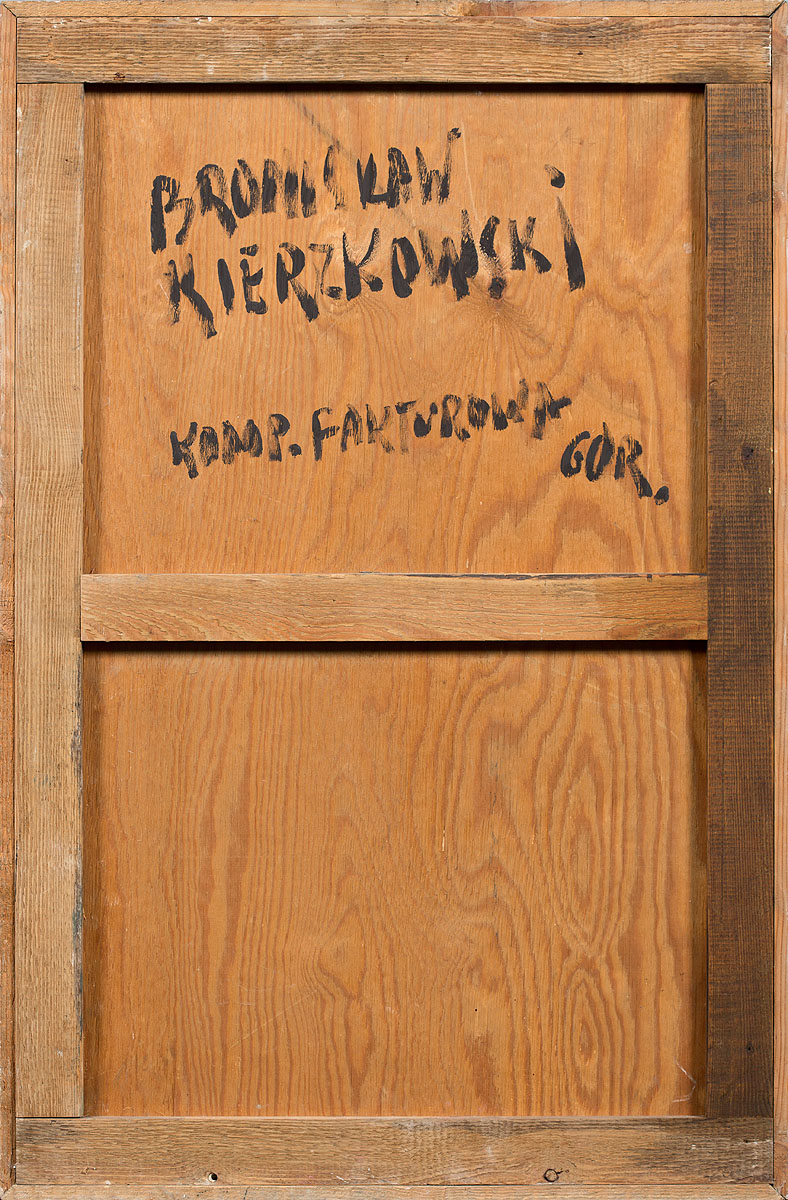 sygn. p.d.: B. KIERZKOWSKI 60 opisany na odwrocie: BRONISŁAW KIERZKOWSKI KOMP. FAKTUROWA GÓR.