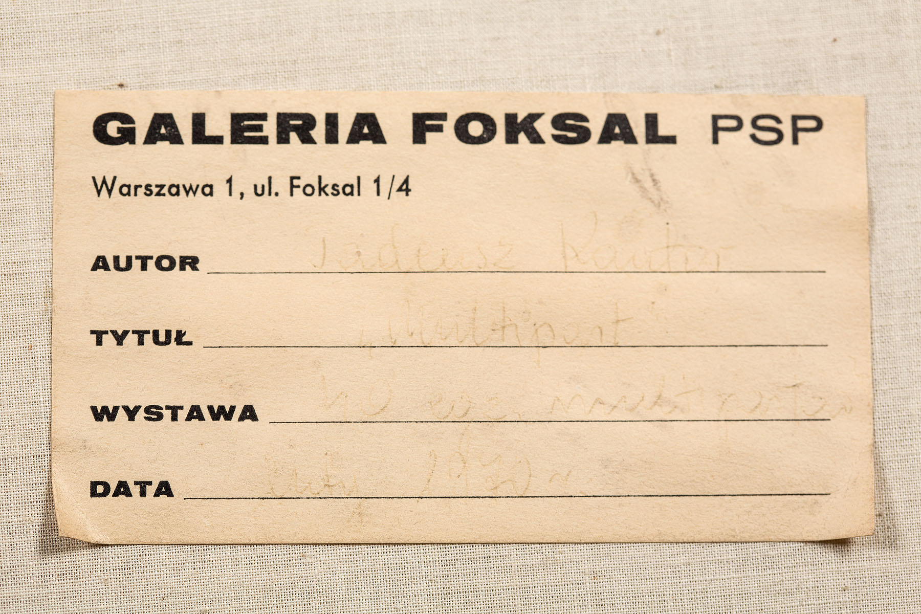 na odwrocie nalepka Galerii Foksal z opisem pracy, numer depozytowy Muzeum Śląskiego w Katowicach
