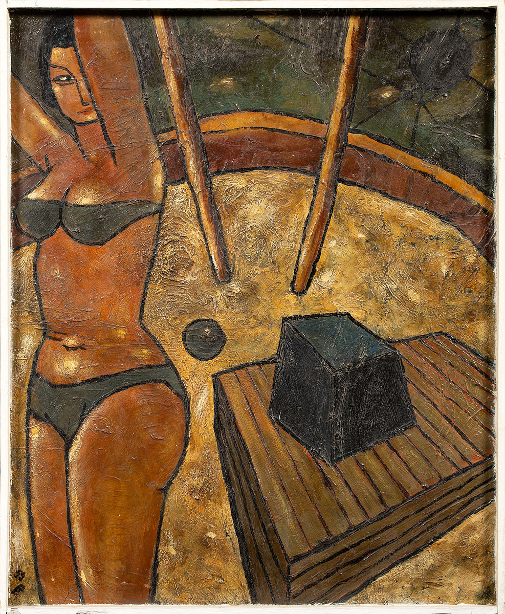 Benon Liberski, polski malarz, grafik, rysownik i pedagog, był jednym z czołowych przedstawicieli łódzkiej szkoły realizmu. Urodził się w 1926 roku w Łodzi, gdzie w 1948 roku rozpoczął studia w Państwowej Wyższej Szkole Sztuk Plastycznych. Studia kontynuował od 1951 roku na Wydziale Grafiki filii krakowskiej ASP w Katowicach. Tam też uzyskał dyplom w 1954 roku. Debiutował w 1951 roku na Międzynarodowej Wystawie organizowanej w ramach Światowego Festiwalu Młodzieży i Studentów w Berlinie, otrzymując I nagrodę za grafikę. Był artystą aktywnym wystawienniczo. Swoje prace prezentował na licznych wystawach w kraju i za granicą. Do najważniejszych należy tzw. „Wystawa ośmiu” (1956), która stanowiła łódzki odpowiednik słynnej warszawskiej wystawy w Arsenale, w której również brał udział. Całe życie związany z Łodzią, w latach 1954-1964 był sekretarzem i wice-prezesem, a od 1972 roku prezesem miejscowego ZPAP. Był również wykładowcą PWSSP. Twórczość Liberskiego zaliczana jest do nowego realizmu. Jego malarstwo nie odzwierciedla bezpośrednio rzeczywistości, a treść podporządkowuje sobie formę. W jego obrazach odnaleźć można wiele cytatów z pop-artu, przejawiających się w komiksowej formie lub tematyce zaczerpniętej z popularnych westernów. Jego prace charakteryzuje zsyntetyzowana forma i kontur, zbliżając je do plakatu. Podejmowana tematyka to widoki przemysłowych miast, ale też cykle „Westerny”, „Maszyny i ludzie” oraz „Akty”. W późniejszej twórczości obrazy przypominają kolaże.