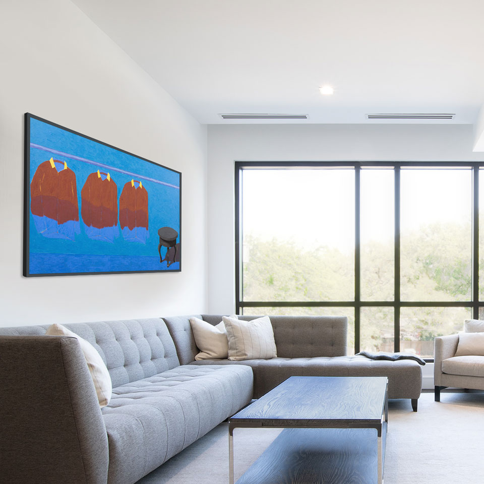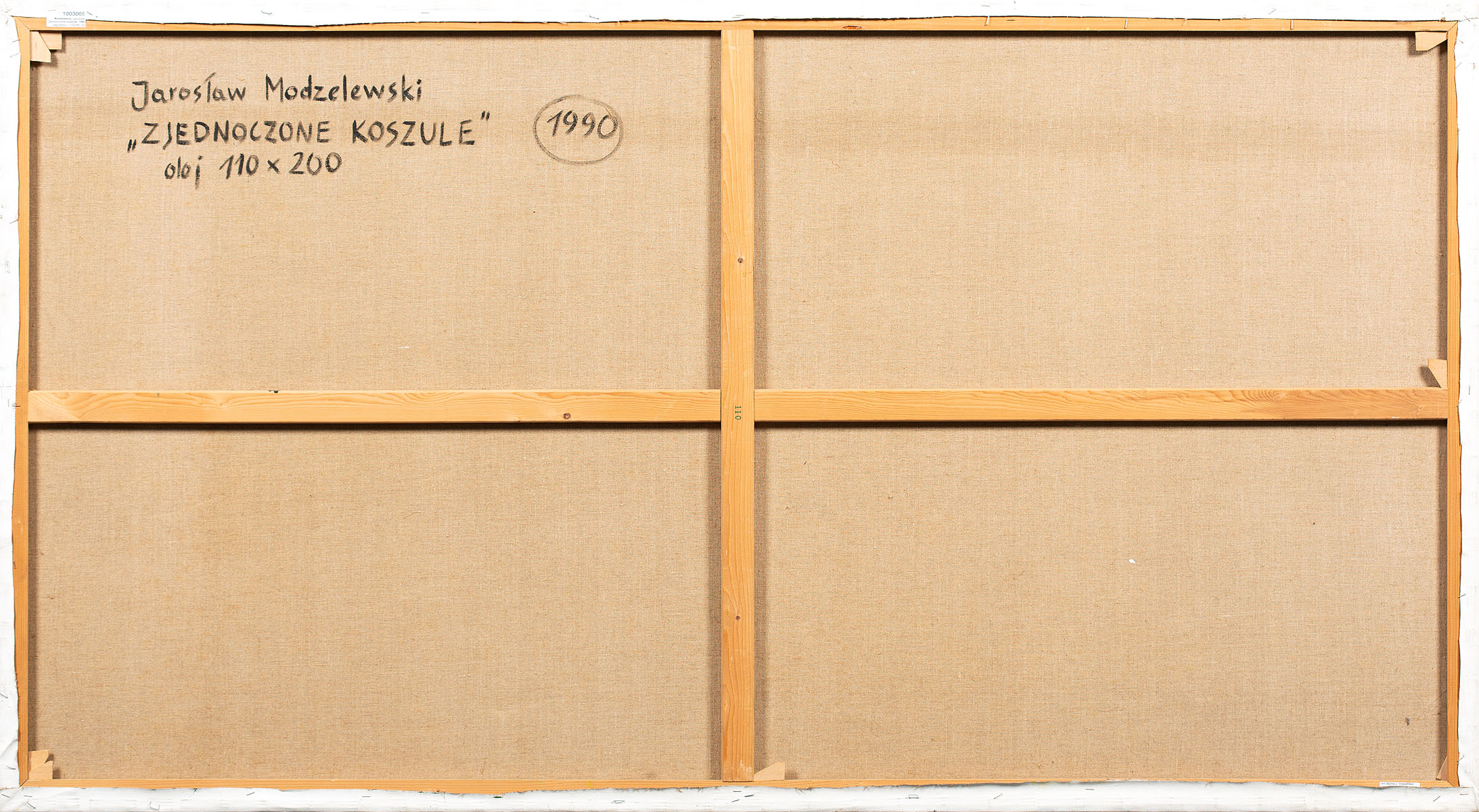 sygn. na odwrocie: Jarosław Modzelewski "ZJEDNOCZONE KOSZULE" olej 110 x 200 1990