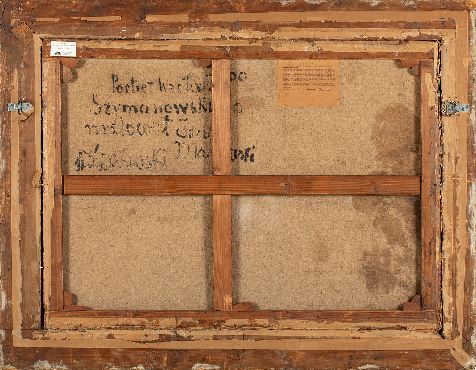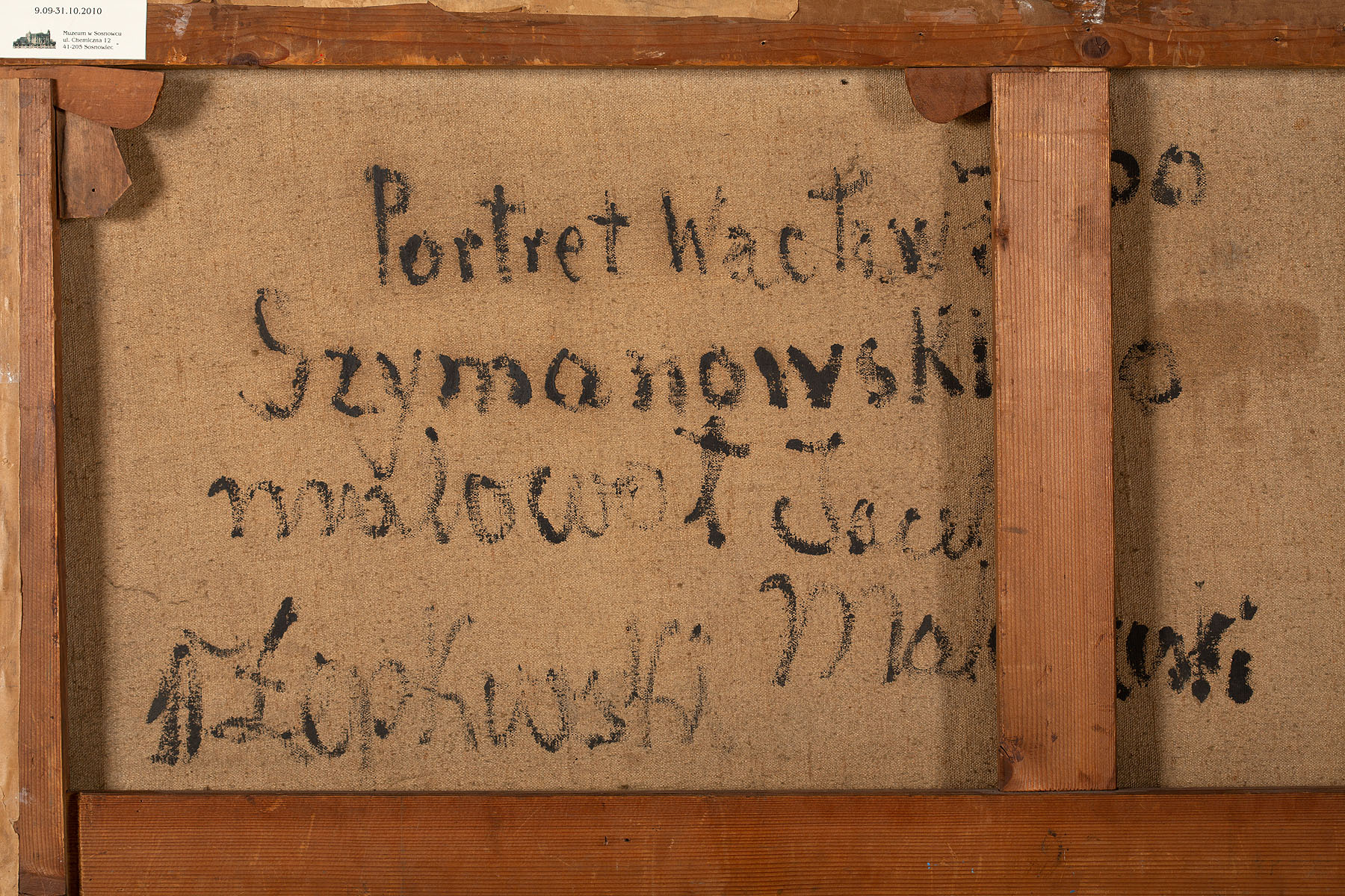 sygn. l.g.: J Malczewski, na odwrocie napis farbą: Portret Wacława Szymanowskiego / malował Jacek Malczewski / W Łepkowski, na odwrocie papierowa nalepka z wystawy "Jacek Malczewski. Malarstwo" w Muzeum w Sosnowcu z 2010 roku.