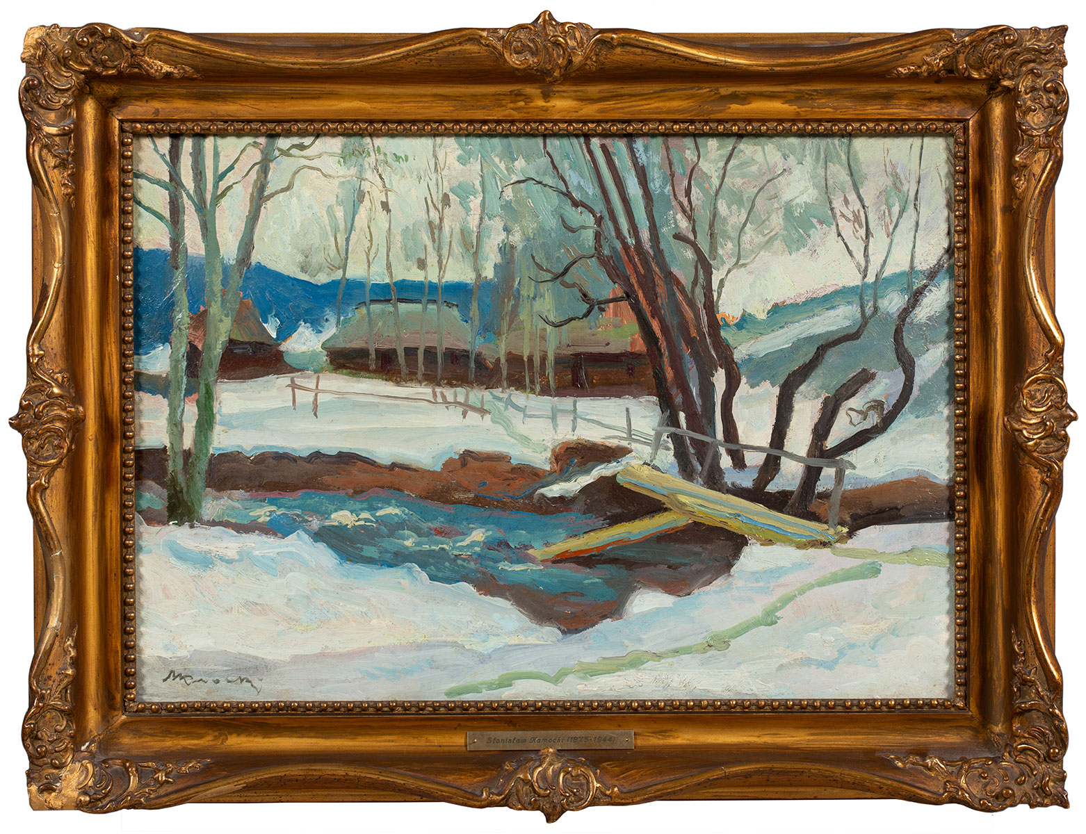 Stanisław Kamocki, malarz i grafik, młodopolski pejzażysta, urodził się w 1875 w Warszawie, zmarł w 1944 w Zakopanem. W latach 1891-1900 studiował w krakowskiej Szkole Sztuk Pięknych pod kierunkiem Leona Wyczółkowskiego, Jacka Malczewskiego i Jana Stanisławskiego. Następnie udał się do Paryża (1901-1902). W latach poprzedzających wybuch I wojny światowej Kamocki dużo podróżował, przede wszystkim do Niemiec, Szwajcarii i Włoch (1904-1905, 1911). Na Półwysep Apeniński powrócił ponownie w 1924 roku. W trakcie wojny służył w Legionach. Od 1919 roku kierował katedrą pejzażu w SSP w Krakowie. W 1937 roku mianowany został profesorem zwyczajnym. Od lat 30. związany z Zakopanem, prowadził na Harendzie kursy malarstwa. Tam też, w 1942 roku objął stanowisko profesora w Państwowej Szkole Góralskiej Sztuki Ludowej. Był członkiem Towarzystwa Artystów Polskich „Sztuka” (od 1906), Wiedeńskiej Secesji (1911–1918), warszawskiego Towarzystwa Zachęty Sztuk Pięknych i Towarzystwa „Sztuka Podhalańska”. Regularnie uczestniczył w krajowych i zagranicznych wystawach „Sztuki”, m.in. w Wiedniu (1908), Wenecji (1910) i Berlinie (1913). Swoje prace prezentował na zbiorowych ekspozycjach polskiej sztuki w Brukseli (1938), Pittsburgu (1935) i Nowym Jorku (1939). Indywidualne wystawy malarstwa artysty odbyły się w warszawskim Towarzystwie Zachęty Sztuk Pięknych (1917) i krakowskim Towarzystwie Przyjaciół Sztuk Pięknych (1920, 1935). Stanisław Kamocki uznawany jest za jednego z najzdolniejszych malarzy pejzażystów, kontynuatorów tradycji Jana Stanisławskiego. Spod pędzla Kamockiego wyszły wielkoformatowe obrazy olejne na płótnie, a od lat 20. również na tekturze. Artysta, któremu podróże były bliskie, najlepiej czul się w plenerze i tam też powstawały najlepsze pejzaże Wołynia, Podola, okolic Krakowa i ukochanych Tatr. Do innych, rzadziej stosowanych przez Kamockiego gatunków, należała martwa natura.