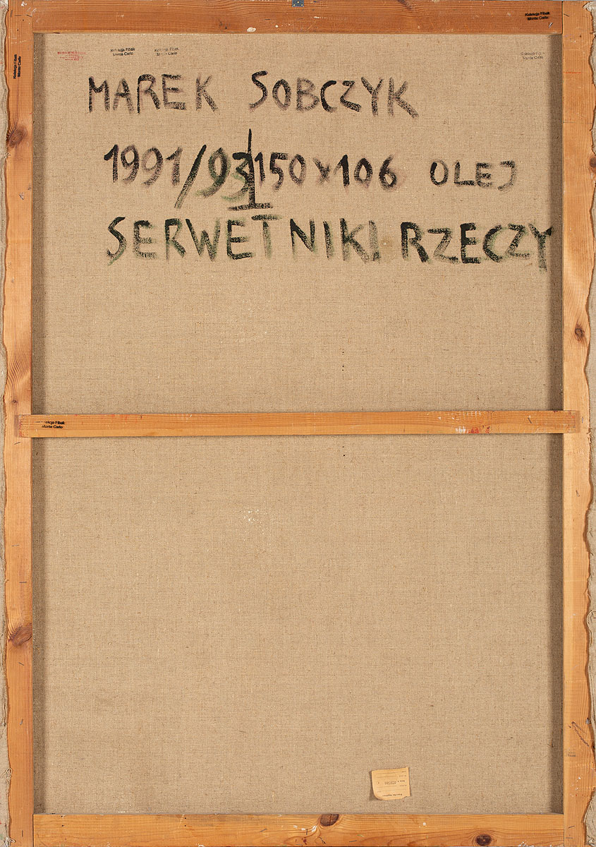 sygn. na odwrocie: MAREK SOBCZYK 1991/1993 150x106 OLEJ SERWETNIKI RZECZY