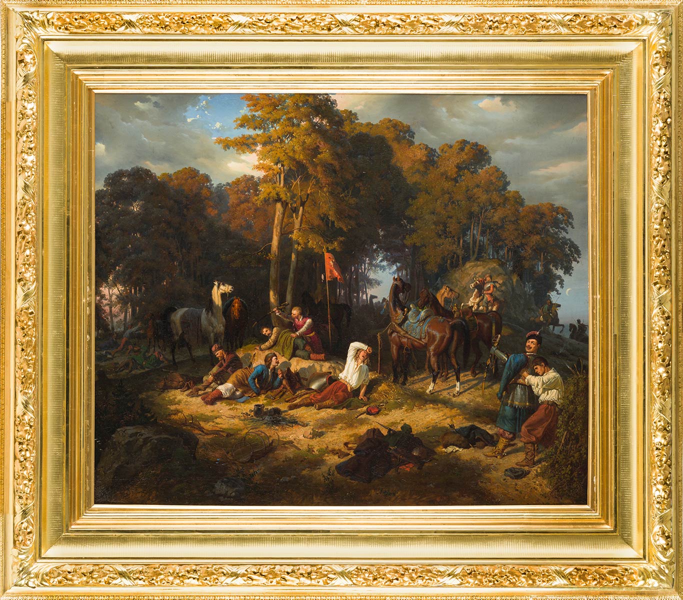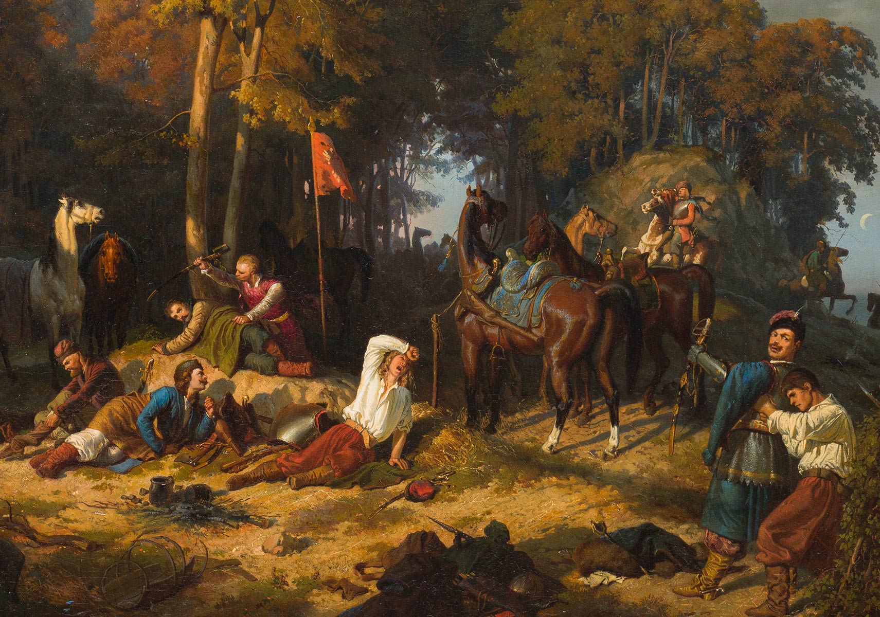 Krótki rys biograficzny Grottgera nakreślony przez Nowakowską uświadamia, jak wielką rolę w krótkim życiu artysty odgrywała tematyka historyczna, jak głęboko jego twórczość była zakorzeniona w tradycji wielkiego malarstwa poprzedników – Januarego Suchodolskiego czy Aleksandra Orłowskiego, by wymienić tylko niektórych z nich. Mnogość zachowanych rysunków w sposób istotny dopowiadają nieliczne ale o niezwykłej wartości kompozycje olejne Grottgera. Repertuar tematyczny tych ostatnich, łączący estetyczne normy akademizmu z romantyczną uczuciowością i realistycznym odtworzeniem szczegółów przedstawionych zdarzeń, obejmował kompozycje historyczne, sceny rodzajowe i portrety. Najwcześniejsze prace artysty powstające pod okiem jego ojca, stały się zaczynem dla wykreowania twórczej wizji naznaczonej stygmatem patriotyzmu. Pod wpływem sztuki Juliusza Kossaka w latach 50. XIX wieku koń stał się często powracającym motywem, natomiast największym piętnem na malarstwie Grottgera z tego okresu odcisnęła się sztuka Januarego Suchodolskiego, jednego z koryfeuszy polskiego malarstwa narodowego. Fascynowała go również twórczość Aleksandra Orłowskiego, wybitnego reprezentanta nurtu rodzajowo-realistycznego w polskim malarstwie. Obrazy Grottgera z lat 1854-1859, kiedy był studentem wiedeńskiej Akademii, reprezentują typowy dla akademickich konwencji obrazowania sposób reżyserowania sceny batalistycznej, dynamicznej, tłumnej, sugestywnie oddającej bitewny chaos.
