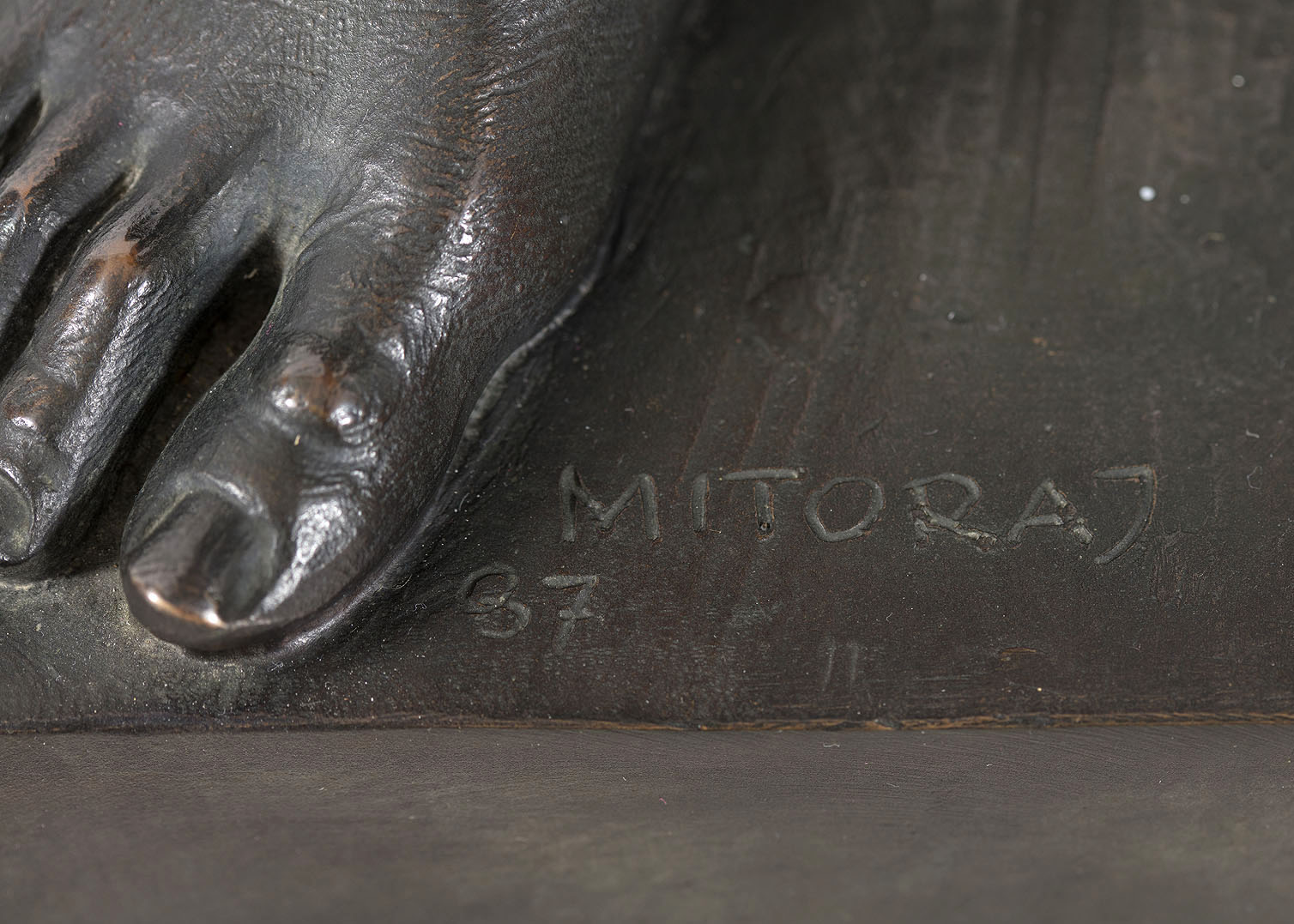 sygn. na podstawie: MITORAJ 87; dedykacja na ramieniu: Per Giovanni Testor na cokole na dole pieczęć FONDERIA MARIANI Pietrasanta Italy; do obiektu dołączono certyfikat autentyczności wydany przez Atelier Mitoraj w Pietrsanta w 2019 r.
