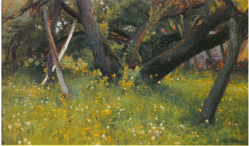 Trusz był przede wszystkim wspaniałym pejzażystą choć z równym powodzeniem malował portrety czy sceny z życia Hucułów. Większość pejzaży przedstawia bliską artyście, rodzinną ziemię okolic Lwowa, czego przykładem jest prezentowany widok na łąkę ze stogami siana. Jednak równie chętnie malował podczas swoich licznych podróży do Włoch, Egiptu, Palestyny i Krymu. Studiował w Krakowskiej Szkole Sztuk Pięknych także u L. Wyczółkowskiego i w pracowni pejzażu J. Stanisławskiego. W 1894 wyjechał do Wiednia i jako wolny słuchacz przez kilka tygodni uczęszczał do tamtejszej ASP. W 1897 równie krótko uczył się w prywatnej szkole A. Ažbego w Monachium. Po studiach wiele podróżował. Na stałe mieszkał we Lwowie, gdzie znajduje się poświęcone mu muzeum.