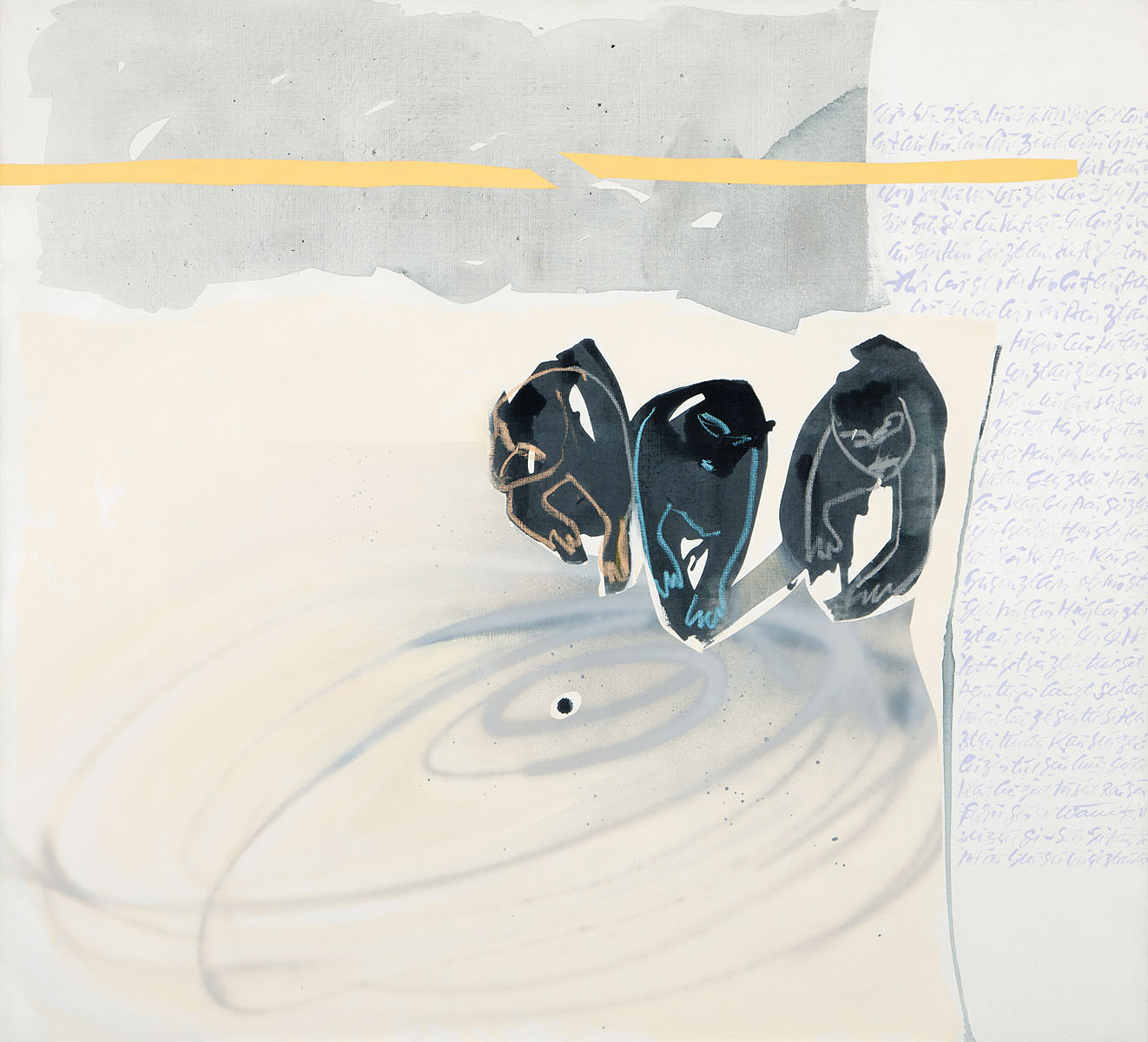 Włodzimierza Warulika interesują dwa tematy: człowiek i pejzaż. Nie jest on jednak malarzem realistycznych kadrów. Wyciska z każdego tematu kwintesencję, syntetyzuje przekaz i czyniąc z niego znak, przedstawia go na płótnie. Swoje kompozycje osadza w sugestywnej, ale zupełnie umownej przestrzeni, w którą jednocześnie wtapia często zapis różnych rodzajów pisma. Są to znaki abstrakcyjne, nie niosące treści, sprawiające jednak wrażenie notacji matematycznej, poetyckiej lub nutowej. To swoisty autokomentarz, interpretacja zawarta w obrazie, niemożliwa jednak do odczytania poza intencją autora lub poza naszą wyobraźnią.