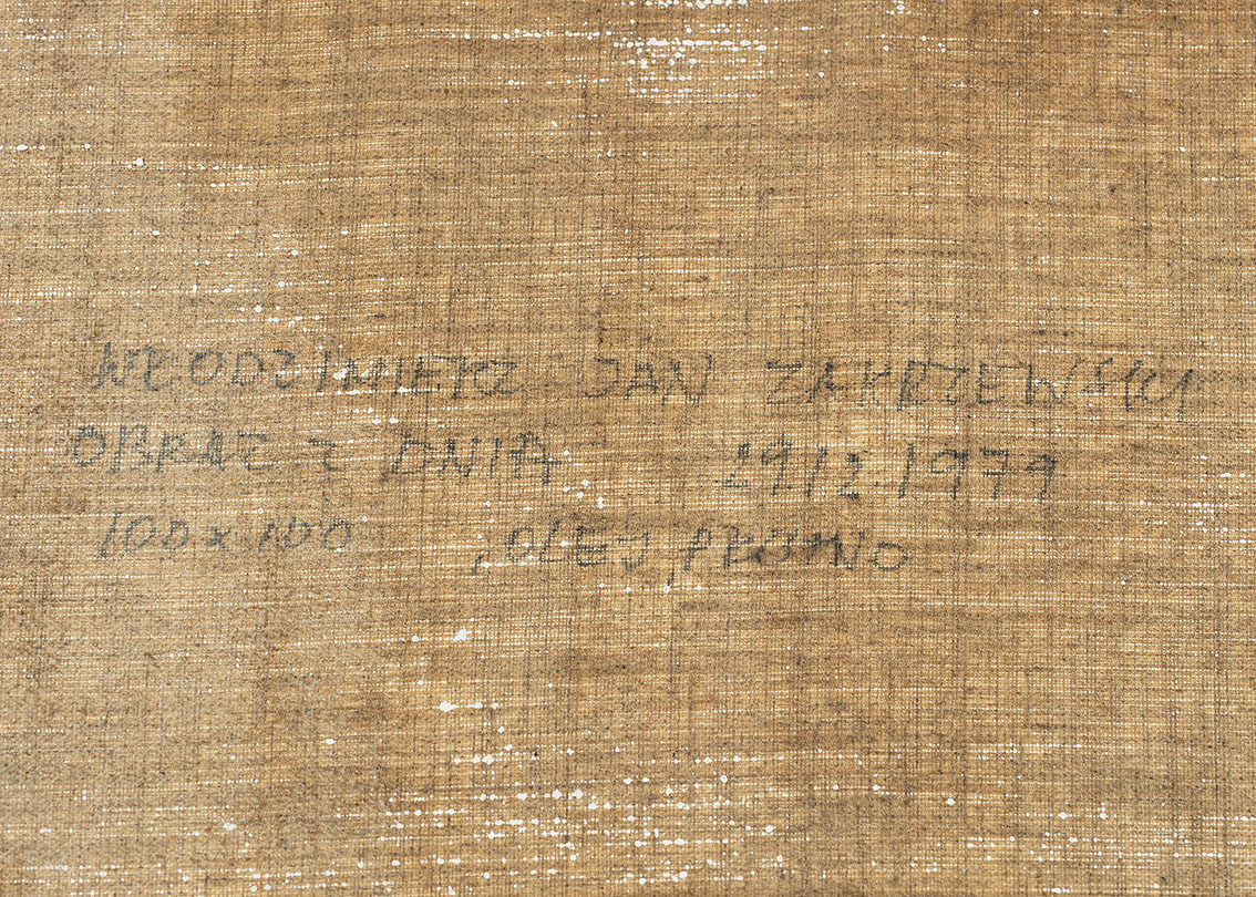 sygn. i opisany na odwrociu: WŁODZIMIERZ JAN ZAKRZEWSKI / OBRAZ Z DNIA 29.12.1979 / 100 x 100 OLEJ PŁÓTNO oraz 1981- GALERIA MDM, WARSZAWA (ind.)