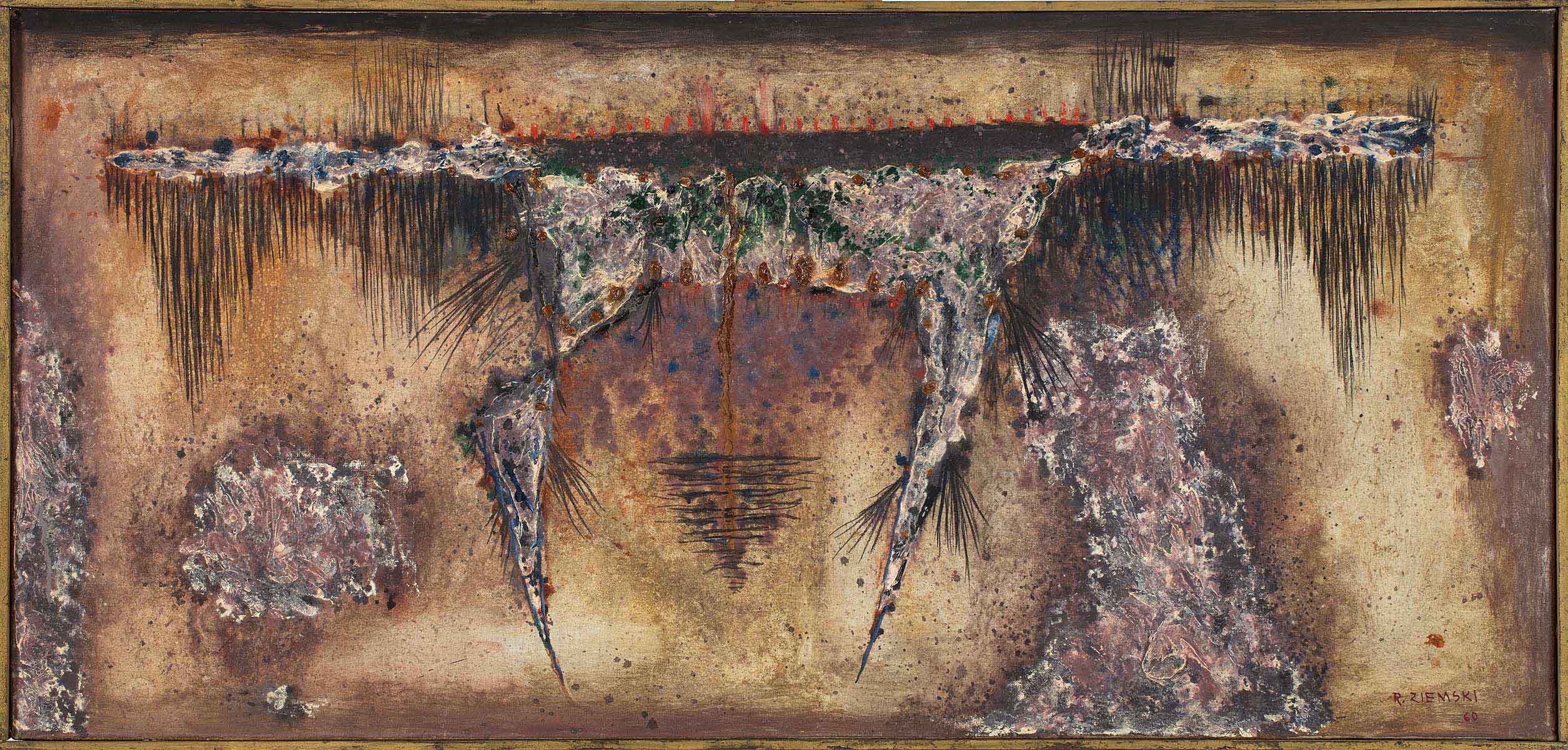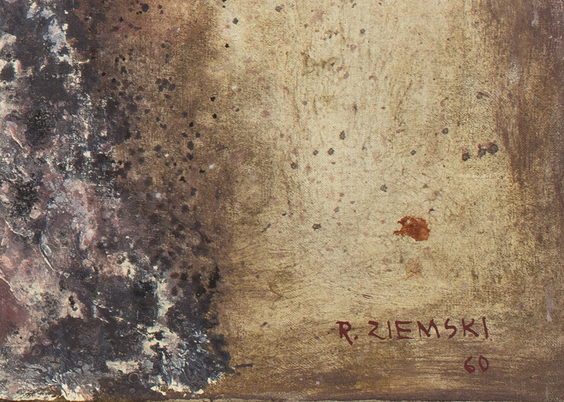 Rajmund Ziemski urodził się w 1930 roku w Radomiu. W latach 1949-1955 studiował na warszawskiej ASP pod kierunkiem Artura Nacht-Samborskiego. Zadebiutował podczas Ogólnopolskiej Wystawy Młodej Plastyki – „Przeciw wojnie – przeciw faszyzmowi”, która odbyła się w warszawskim Arsenale. Po czasie „odwilży” związał się z grupą artystów, skupionych w kręgu prowadzącego galerię „Krzywe Koło” Mariana Bogusza. Największy wpływ na styl Ziemskiego miał okres nauki oraz współpraca ze wspomnianym wcześniej Nacht-Samborskim, przedstawicielem szkoły kapizmu. Owa współpraca wytworzyła w nim wysoką wrażliwość kolorystyczną. Innym istotnym elementem twórczości artysty był wpływ malarstwa z gatunku informel. Właśnie w tym stylu tworzył od końca lat 50., co uczyniło go jednym z głównych przedstawicieli tego kierunku w kraju. Artysta wspominał: „W okresie Arsenału, a zresztą i później w latach 56 i 57, moje obrazy bliskie były malarstwu figuratywnemu; obracałem się w świecie realiów znanych, realia te wystarczały jeszcze treściom, które chciałem przekazać. Ale z czasem okazało się, że dla spraw, jakie mam do powiedzenia, dla treści, jakie chcę w swoich obrazach zamknąć, muszę znaleźć formy będące czymś w rodzaju syntezy, formy obiektywnie kreujące, a nie powtarzające otaczający świat; formy, których sugestywność odpowiadałaby zamierzanemu celowi. Inspiracji szukałem w pejzażu” (Rajmund Ziemski. Malarstwo, Akademia Sztuk Pięknych, Zachęta Narodowa Galeria Sztuki, Warszawa 2010, s. 105).