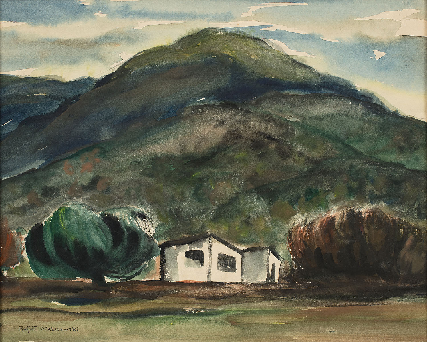 Rafał Malczewski studiował filozofię, architekturę i agronomię w Wiedniu a następnie, po powrocie do rodzinnego Krakowa, podjął nauke w Akademii Sztuk Pięknych. W kunszt malarski wprowadzał młodego artystę przede wszystkim ojciec, w którego atelier Rafał szlifował talent od najwcześniejszych lat. Zasłynął jako wprawny pejzażysta, reprezentant nurtu przestylizowanego, „naiwnego” realizmu. Przyjaźnił się ze Stanisławem Ignacym Witkiewiczem i Karolem Szymanowskim. Był członkiem Towarzystwa Sztuka Podhalańska a w 1932 wstąpił do Stowarzyszenia Artystów Polskich Rytm. Po wybuchu II wojny światowej przedostał się do Francji a w 1940 wyjechał przez Hiszpanię i Portugalię do Brazylii. Stała się ona ostatnim etapem poprzedzającym definitywny wyjazd artysty do Kanady. Początkowo mieszkał w Rio de Janeiro, gdzie znalazł nabywców na swoje obrazy. Malował techniką akwareli widoki Rio de Janeiro i Kurytyby oraz krajobrazy Parany. W 1942 roku przeniósł się do Kurytyby do swojej kuzynki Marii Bochdan-Niedenthal.Okres brazylijski (1941–1942) to fascynacja egzotyczną przyrodą i odmienną cywilizacją – powstały wówczas obrazy przedstawiające skaliste góry, rozległe przestrzenie z akwenami wodnymi, autostrady z wiszącymi nad nimi kolorowymi drzewami. Jednym ze stale przewijających się motywów, które odnajdujemy w obrazach Rafała Malczewskiego jest znikomość człowieka – drobne, śmieszne figurki ludzkie, maleńkie wobec ogromu przyrody, wobec potężnego, dominującego świata techniki. Do ulubionych tematów artysty należały też małe stacyjki, wagony, semafory, zwrotnice, sieci szyny.