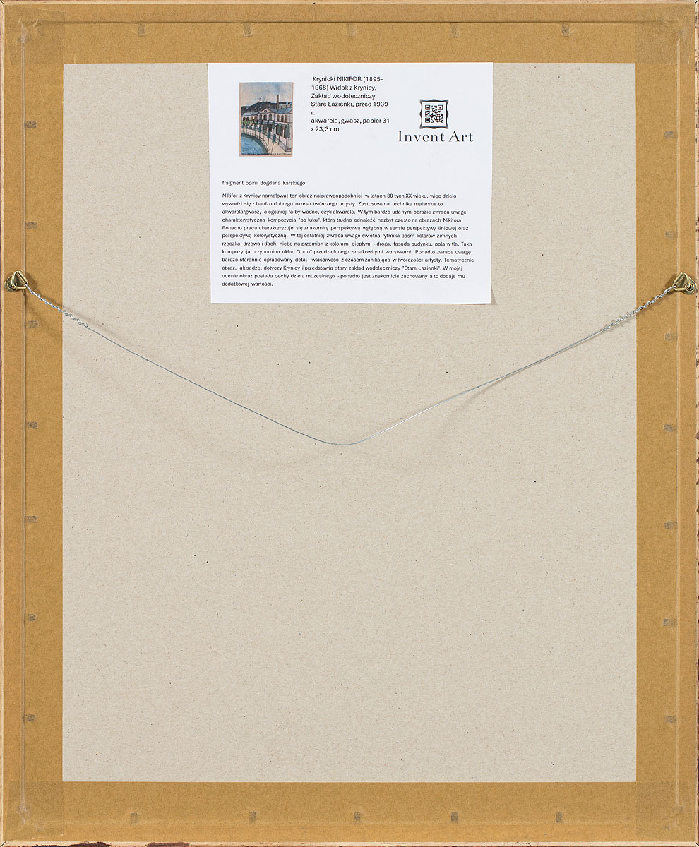 Nikifor (właśc. Epifaniusz Drowniak) uważany jest za jednego z najznakomitszych twórców tzw. naiwnych (prymitywistów) na świecie. Urodził się około 1895 roku. Był Łemkiem po matce, odziedziczył po niej również wadę słuchu i wymowy. Wychowany w nędzy, również przez wzgląd na ułomności nie odebrał nigdy pełnej edukacji, nauczył się jedynie pisania drukowanymi literami oraz czytania i podstaw liczenia. Osierocony w czasie I Wojny Światowej, funkcjonował na marginesie krynickiej społeczności jako włóczęga, żebrak, postać kuriozalna. Czuł jednak niesłychanie silną więź z tym miejscem, dwukrotnie w ramach akcji „Wisła” wywożony w odległy koniec Polski, z uporem wracał do rodzinnego miasta. „Matejko z Krynicy” którego sensem życia było malarstwo, wrósł w pejzaż uzdrowiskowego deptaku. Krynica była jego światem, a w nim najważniejszym miejscem była cerkiew. Miejsce gdzie prowadzała go matka, miejsce w którym czuł się niejako bezpiecznie. Bez względu na format, jego obrazki mają w sobie pewien ikoniczny monumentalizm, wyniesiony z ruskich ikon cerkiewnych, stanowiący pewną eklektyczną całość z „pamiątkarską” koncepcją miejskich widoków, portretów i ilustracji wybranych budynków uzdrowiskowej miejscowości. Otoczone dekoracyjną bordiurą z wzorkiem i oznaczone wyraźnym podpisem kompozycje zamykały i podsumowywały to co widział. Widoki miasteczek, w przeważającej większości Krynicy ale też Krakowa czy Warszawy, przeplatają się z widokami linii kolejowych, pejzaży, portretami przechodniów… Bardzo ważną częścią jego prac, pozwalającą nam wniknąć trochę w wewnętrzny świat, prawie głuchoniemego artysty są jego autoportrety. Bardzo liczne, głównie z lat 30tych, wymownie świadczą o jego sposobie postrzegania samego siebie i własnej roli a nawet misji. „Nikifor Biskup”, „Nikifor nauczający”, zamyślony, wytwornie ubrany, przy sztaludze, z gestem błogosławieństwa, często z podpisem „Pamiątka z Krynicy”. Swój warsztat nosił przy sobie, farbki, kredki, papierki urzędowe, zużyte zeszyty, opakowania czy kartoniki po zapałkach. Ten dobytek wielokrotnie konfiskowano w ramach walki z żebractwem, co było jednak daremne. Dla Nikifora bowiem malarstwo było mocą, sensem i celem jego istnienia. On zaś był artystą malarzem. Szacuje się, że Nikifor stworzył kilkadziesiąt tysięcy prac. Pierwszym, który rozpoznał w obrazkach krynickiego biedaka wielką sztukę był ukraiński malarz Roman Turyn. Mając ponad dwieście jego prac pokazał je członkom Komitetu Paryskiego, sztuka ta zachwyciła kapistów, prace te włączono do wystawy zbiorowej ekspozycji malarzy lwowskich i przedstawicieli École de Paris, przygotowanej przez lwowskie Ukraińskie Muzeum Narodowe w 1932 roku. Autorem pierwszej publikacji na temat Nikifora był Jerzy Wolff , który w 1938 roku pisał o nim: Ze sztuką tą (Nikifora) zetknęliśmy się ja i moi przyjaciele przed paru laty w Paryżu, zetknięcie było olśniewające, pamiętam dotąd chwilę, kiedy w pracowni Janów Cybisów stanąłem po raz pierwszy wobec tych małych akwarelek i (…) dotąd nie ochłonąłem z podziwu. Uderzyła mnie w tych pracach niezwykła dojrzałość i (…) odrębność (…). Zamalowano w ciągu wieków niezliczoną ilość kawałków płótna i deski, a te kawałeczki papieru nie przypominały (…) nic, com widział. (…) Te małe obrazki są proste jak natura, jedyność ich polega wyłącznie na tym, że najzupełniej szczerze zobaczono rzeczywistość innymi niż wszyscy oczyma. (…) W absolutnej wrażliwości Nikifora na barwę, którą porównać można do absolutnego słuchu, przeglądają się (…) nasze własne marzenia malarskie (…). Nadal jednak nie zyskiwał popularności pozwalającej mu utrzymać się godnie z malarstwa. Dopiero w latach 50tych i 60tych, sytuacja poprawiła się. Byłą to głównie zasługa Elżbiety i Andrzeja Banachów, którzy wydali o nim wnikliwe publikacje ale także opiekowali się nim i wspierali na co dzień. Do popularyzacji sztuki krynickiego prymitywisty bardzo przyczynił się też Aleksander Jackowski – wieloletni, niestrudzony badacz twórczości polskich artystów „naiwnych”. Od 1960 aż do śmierci Nikiforem opiekował się krynicki artysta malarz Marian Włosiński. Poświęcił dla niego swój talent i stworzył mu dobre warunki do pracy i życia, a po śmierci Nikifora zadbał o zachowanie jego twórczości. Doczekał kilku swoich wystaw, indywidualnej krajowej w roku 1949, poprzez szereg zagranicznych, od końca lat 50. (Paryż – galeria Diny Vierny), Amsterdam, Bruksela, Liege, 1959; krytycy porównywali malarza do Celnika-Rousseau), przez lata 60. (Haifa, 1960; Wiedeń, Baden-Baden, Frankfurt nad Menem, Hanower, 1961). Wymienić też trzeba pierwszą i ostatnią retrospektywę: pierwsza miała miejsce w 1967 roku w warszawskiej „Zachęcie”, ostatnia – w 2004 roku w warszawskim Muzeum Etnografi cznym. Natomiast w roku 1995 w krynickiej willi „Romanówka” otwarto Muzeum Nikifora (jako oddział Muzeum Okręgowego w Nowym Sączu). W latach 60tych pod wpływem jego twórczości Edward Dwurnik zmienił styl swojego malarstwa. Nikifor zmarł w październiku 1968 roku. Świat ponownie przypomniał sobie o nim w 2004 roku dzięki filmowej ekranizacji biografi i jego postaci „Mój Nikifor”.