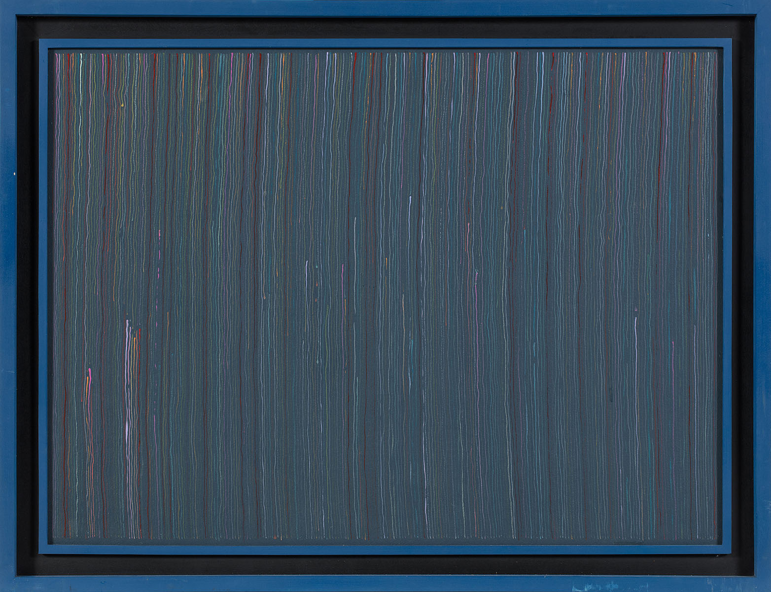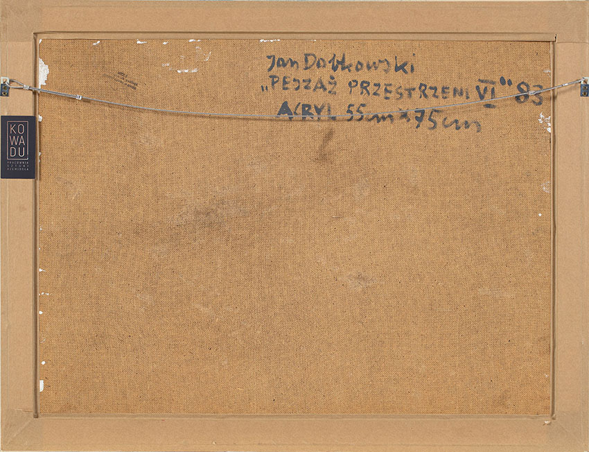 sygn. i opisany na odwrociu: Jan Dobkowski / „PEJZAŻ PRZESTRZENI VI” 83 / AKRYL 55 cm x 75 cm