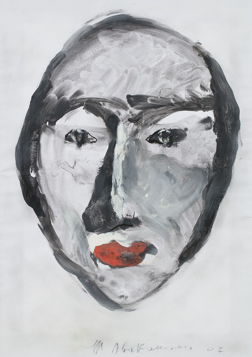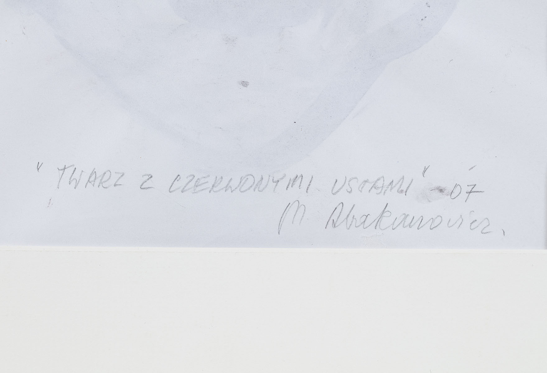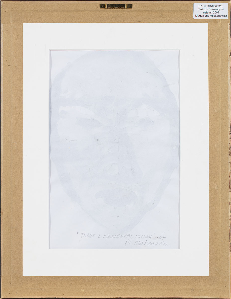 sygn. u dołu: M. Abakanowicz 07, sygn. i opisany na odwrociu: "TWARZ Z CZERWONYMI USTAMI" 07/ M. Abakanowicz