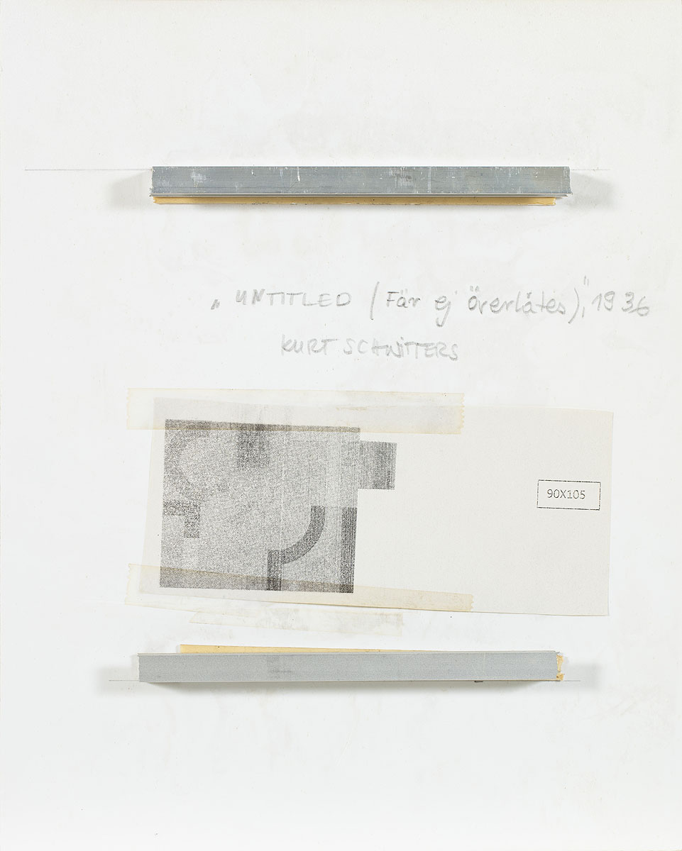 sygn. i opisany na odwrociu: "Spóźnione rozmowy z Kurtem Shwittersem" / Brandt 2012 r. oraz opisany na odwrociu (ołówkiem): "UNTITLED (Fär ej Örerlates)", 1936 / KURT SCHWITTERS