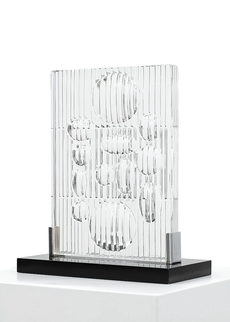 szkło Rosenthal, podstawa drewniana / wys. 33 cm (z podstawą 35,5 cm), ed. 612/2000