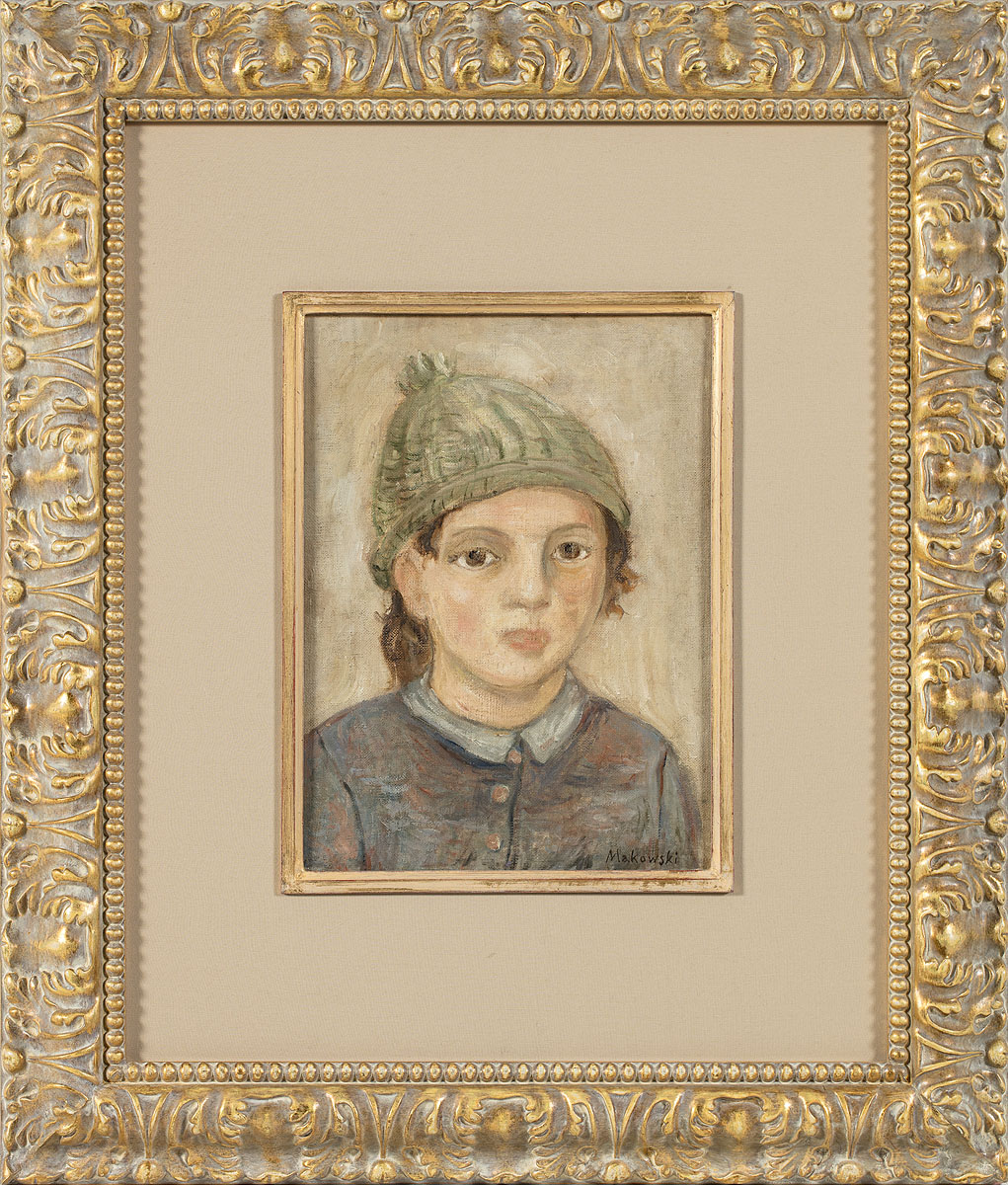 Portrety dziecięce stanowią temat szeroko podejmowany w polskiej tradycji malarskiej, choćby przez Stanisława Wyspiańskiego, Jacka Malczewskiego czy Wlastimila Hofmana. Tadeusz Makowski jednak wzbogacił go o niespotykany wcześniej ładunek emocjonalny i pogłębione studium psychologiczne. Udało mu się uczynić z dzieci medium wyrażające wizję siebie jako człowieka, prawdę o życiu i otaczającym świecie. Po ukończeniu studiów na krakowskiej Akademii Sztuk Pięknych, zetknięciu się z kubizmem i malarstwem niderlandzkim, Tadeusz Makowski odnalazł pełnie malarskiego wyrazu w neoromantycznych kompozycjach, których głównym bohaterem uczynił duszę dziecka. Od około 1918 roku przez blisko dekadę temat ten stał się centralnym motywem jego twórczości owocując serią portretów małych modeli. Ich cechą charakterystyczną jest powaga, zamyślenie malujące się w podniesionym spojrzeniu czy rozchylonych ustach, jakby trapiła je jakaś wcale niedziecinna troska. Skupienie artysty na psychologicznej głębi portretowanych to kontynuacja fascynacji dziecięcą psychiką, jaka zrodziła się w dobie romantyzmu. Ówcześni artyści zaczęli dostrzegać i doceniać wagę i autentyczność dziecięcych emocji i przeżyć. Tadeusz Makowski kilkadziesiąt lat później staje się kontynuatorem XIX wiecznej wizji romantyków Oferowany „Portret chłopca” wpisuje się w okres twórczości artysty nazywany umownie przez Władysławę Jaworską realizmem lirycznym, przypadającym na lata 1923-27 (Jaworska W., Tadeusz Makowski. Życie i twórczość, wyd. Zakład Narodowy im. Ossolińskich / PAN, Wrocław-Warszawa-Kraków 1964, s. 169). W odróżnieniu od wcześniejszego okresu realizmu naiwnego, portrety liryczne charakteryzuje maksymalne wysubtelnienie formy i koloru. Ten ostatni rozgrywa się w zgaszonych tonacjach beżu, błękitu i w odcieniach zieleni, nadając dziełom niezwykłej intymności i poezji. Makowski mówił: „Unikam silnych barw, bo wrzeszczą – wolę przytłumione piano” (Jaworska W., Tadeusz Makowski. Życie i twórczość, op. cit., s. 190). Harmonia i efekt oferowanego portretu tkwi właśnie w przygaszonej kolorystyce, która zamiast zagłuszać uwypukla to, co w obrazie najistotniejsze – autentyzm dziecięcego przeżycia.