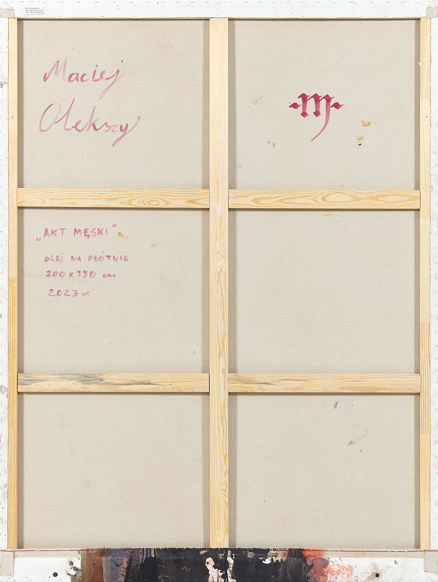 sygn. i opisany na odwrociu: Maciej / Olekszy "AKT MĘSKI" / OLEJ NA PŁÓTNIE / 200 x 150 cm / /2023 r