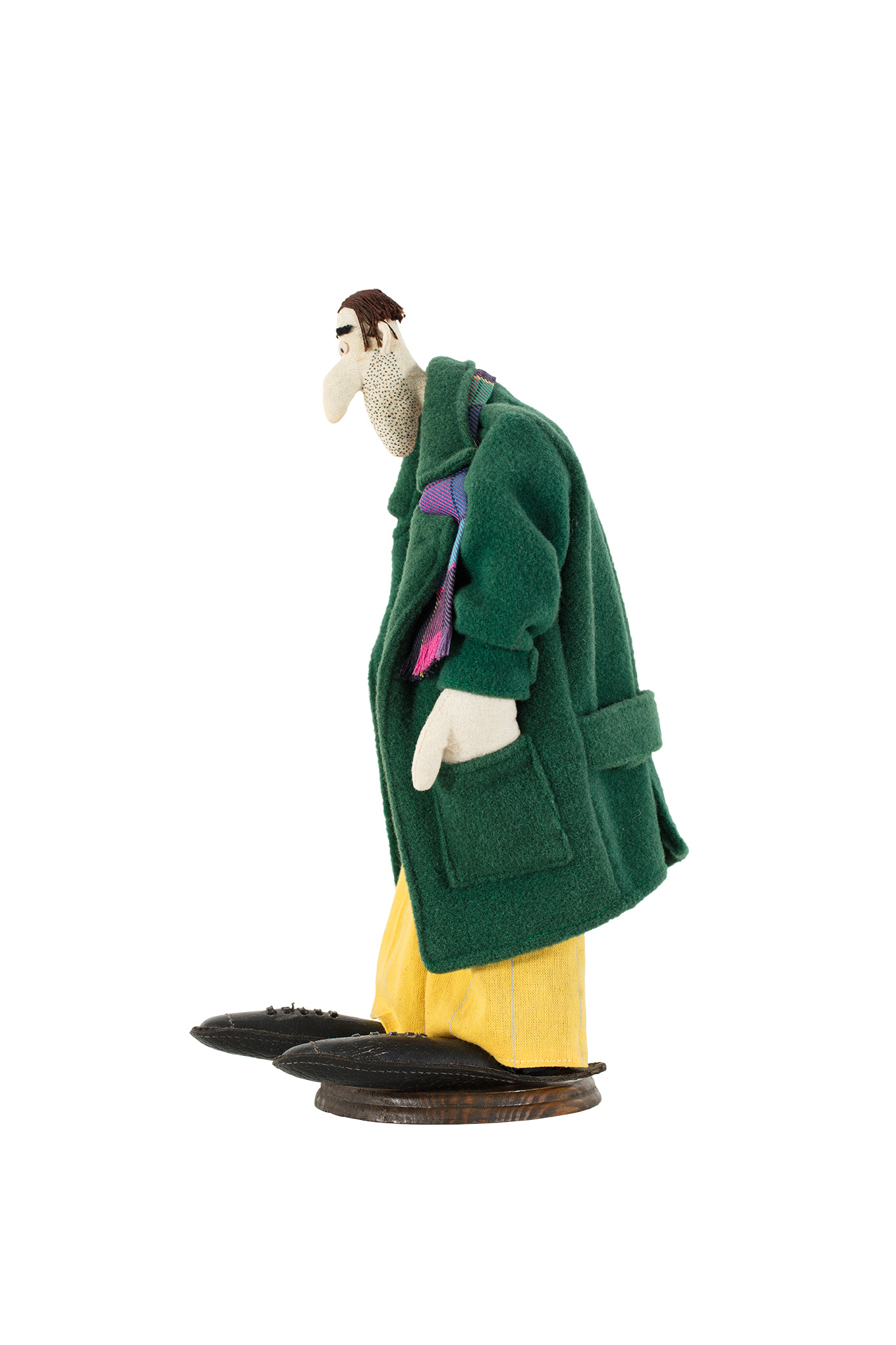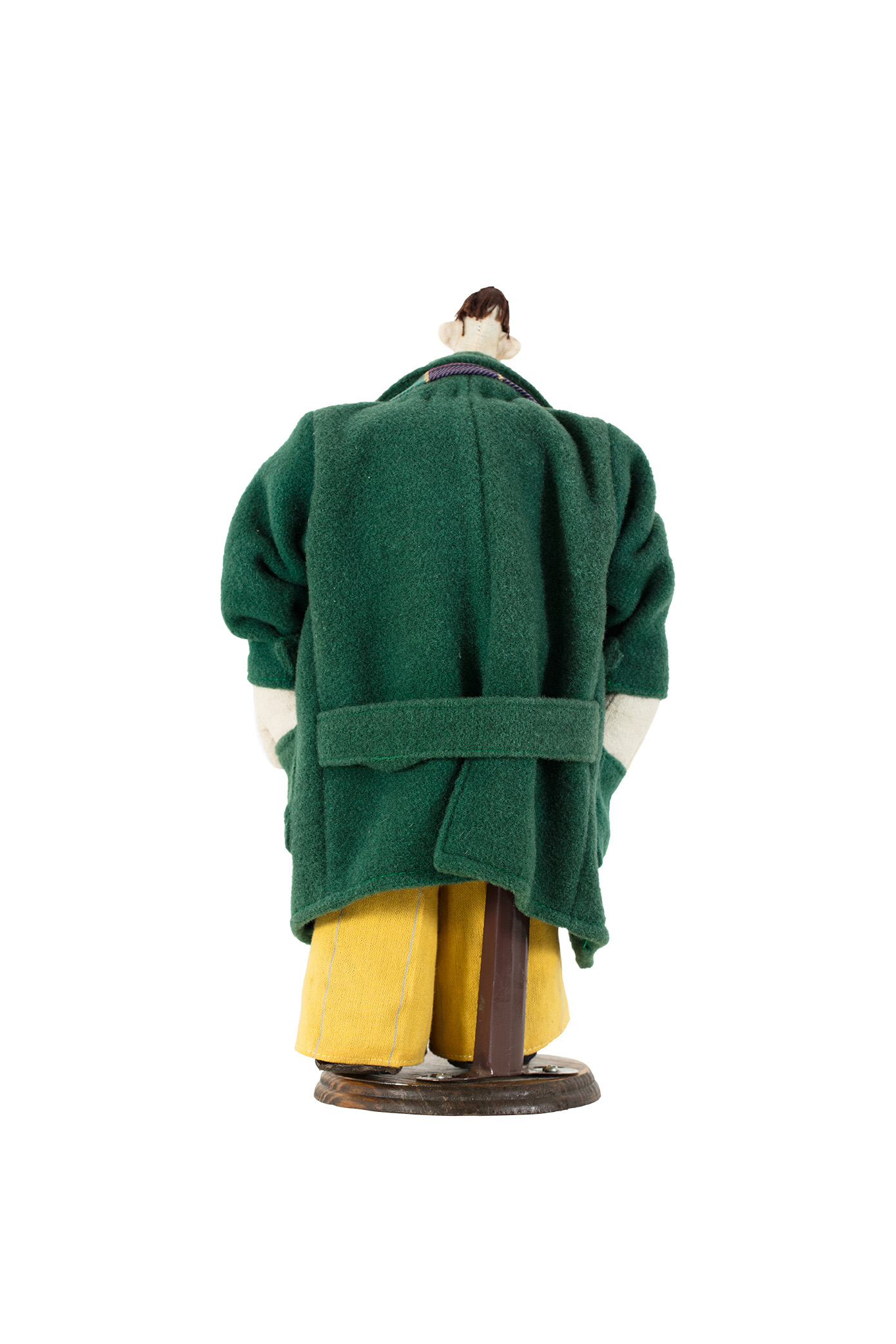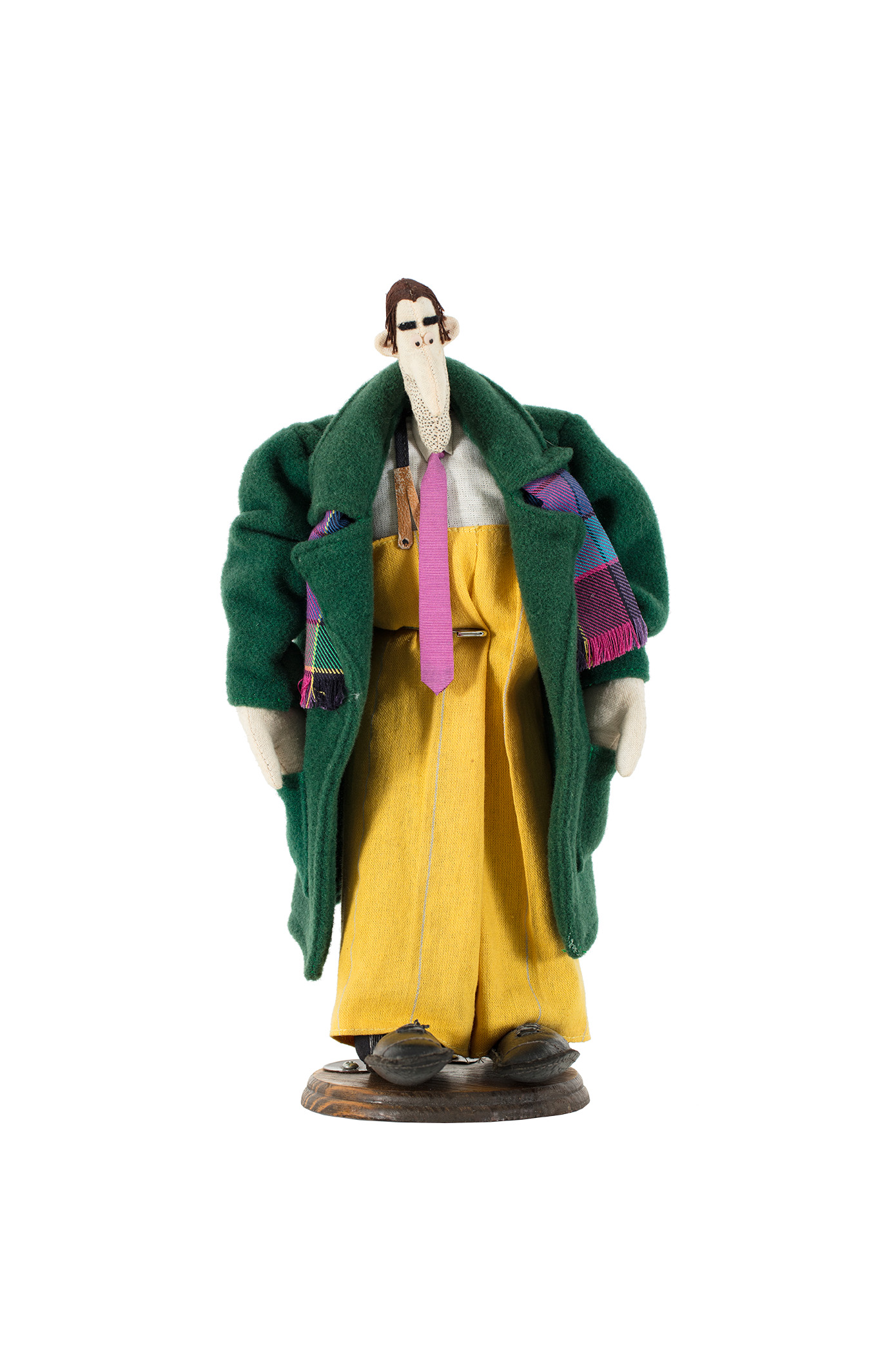 technika własna, tkanina, skóra, podstawa drewniana / wys. 32 cm