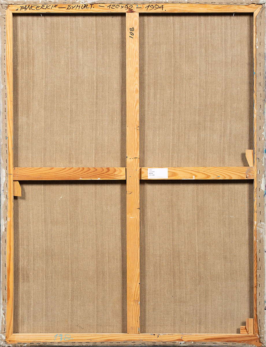 sygn. p.d.: S. Krygier 94, opisany na odwrocie: "TANCERKI"-SYMULT.-120 x 92-1994. oraz nalepka z opisem pracy