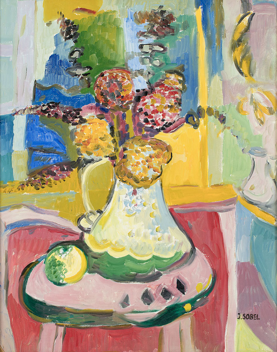 Judyta Sobel urodziła się w 1924 roku we Lwowie, zmarła w 2012 roku w Nowym Jorku. W 1950 roku ukończyła studia w Państwowej Wyższej Szkole Sztuk Plastycznych w Łodzi, w której była studentką m.in. Władysława Strzemińskiego. Po obronie dyplomu wyjechała na stypendium do Izraela, a następnie wyemigrowała do Stanów Zjednoczonych i osiadła w Nowym Jorku. Sobel zadebiutowała jeszcze jako studentka w 1948 roku na I Wystawie Sztuki Nowoczesnej w Krakowie. W Polsce ponownie można było oglądać jej prace na przełomie lat 1999 i 2000 na dwóch dużych wystawach w krakowskiej Galerii Starmach: „I Wystawa Sztuki Nowoczesnej – pięćdziesiąt lat później” i „Nowocześni a socrealizm”. Ponadto obrazy artystki prezentowane były na wielu wystawach w Polsce i na świecie, m.in. w Łodzi, we Wrocławiu, w Paryżu, Tel Awiwie czy Nowym Jorku. Malarstwo Judyty Sobel było wielokrotnie zauważane i doceniane przez krytykę, artystka została uhonorowana m.in. pierwszą nagrodą na wystawie paryskiej Gallery Saks w 1956 roku. Dziś obrazy Sobel są częścią kolekcji m.in. Muzeum Sztuki w Łodzi. Twórczość Judyty Sobel obejmuje głównie pejzaże i martwe natury bliskie w wyrazie malarstwu ekspresjonistycznemu z elementami abstrakcji, rzadziej w jej dorobku pojawiają się portrety. Artystka w swoich pracach posługuje się nasyconą gamą barwną, operuje plamą i kontrastem, a część kompozycji poddaje swoistej deformacji, czasem zbliżającej się do swego rodzaju prymitywizacji kształtów.