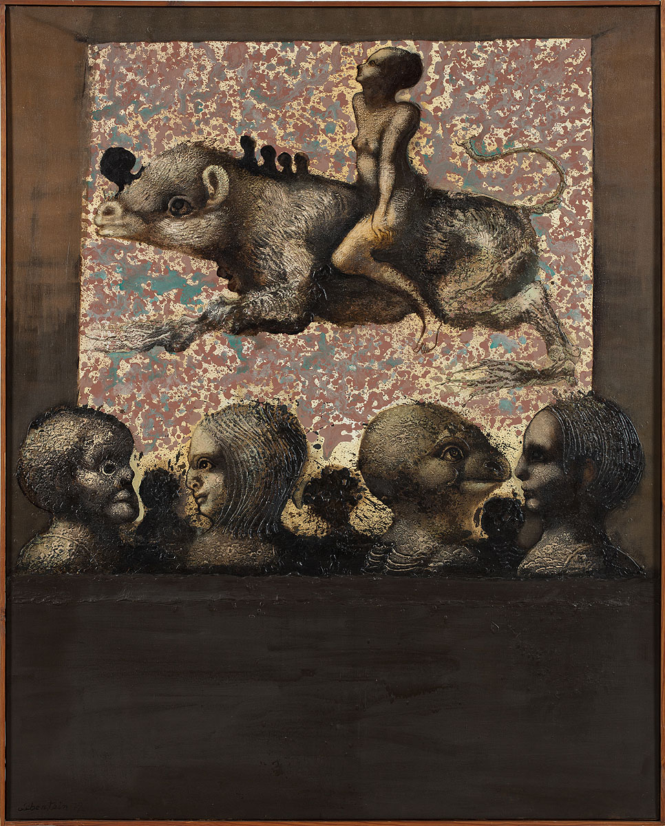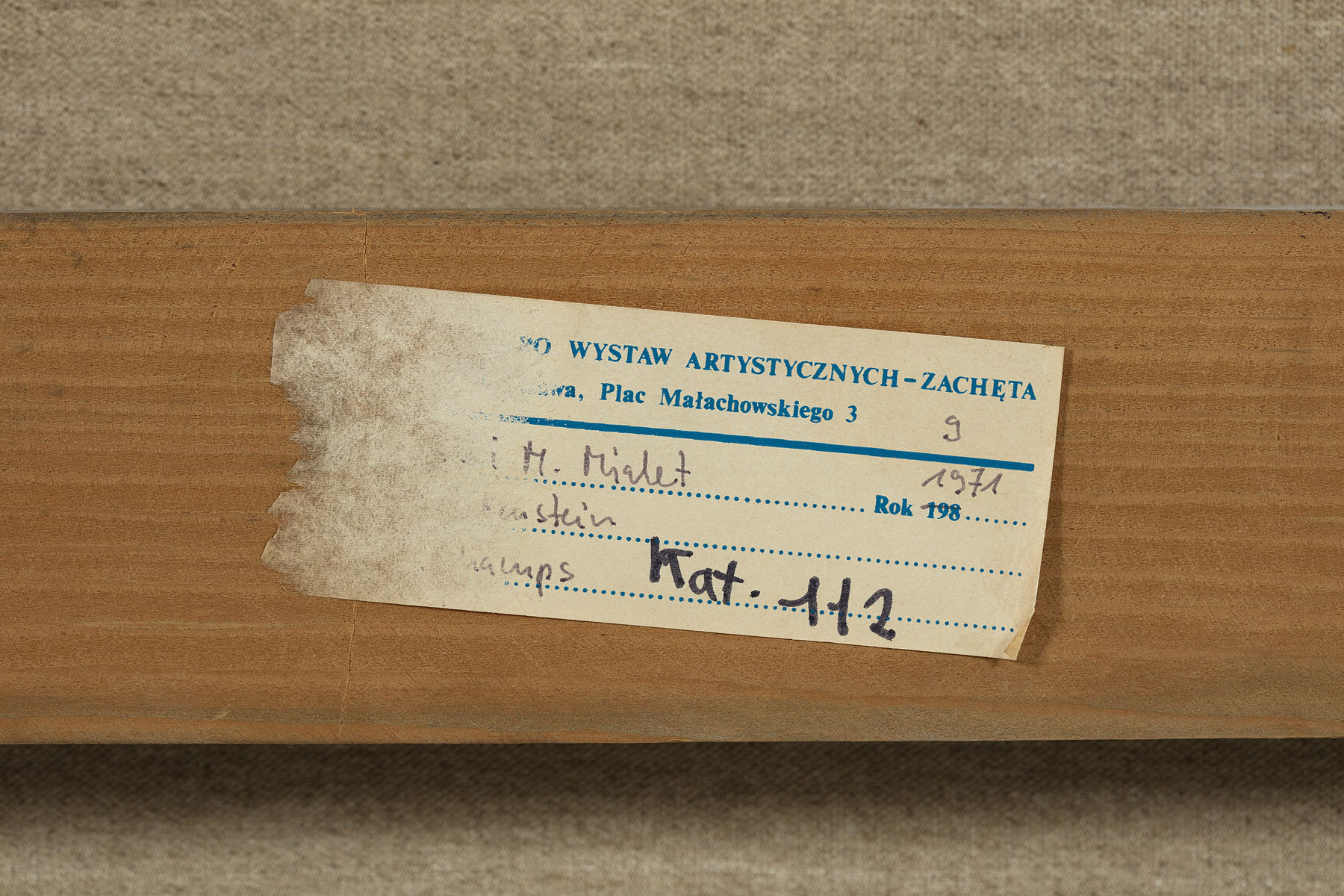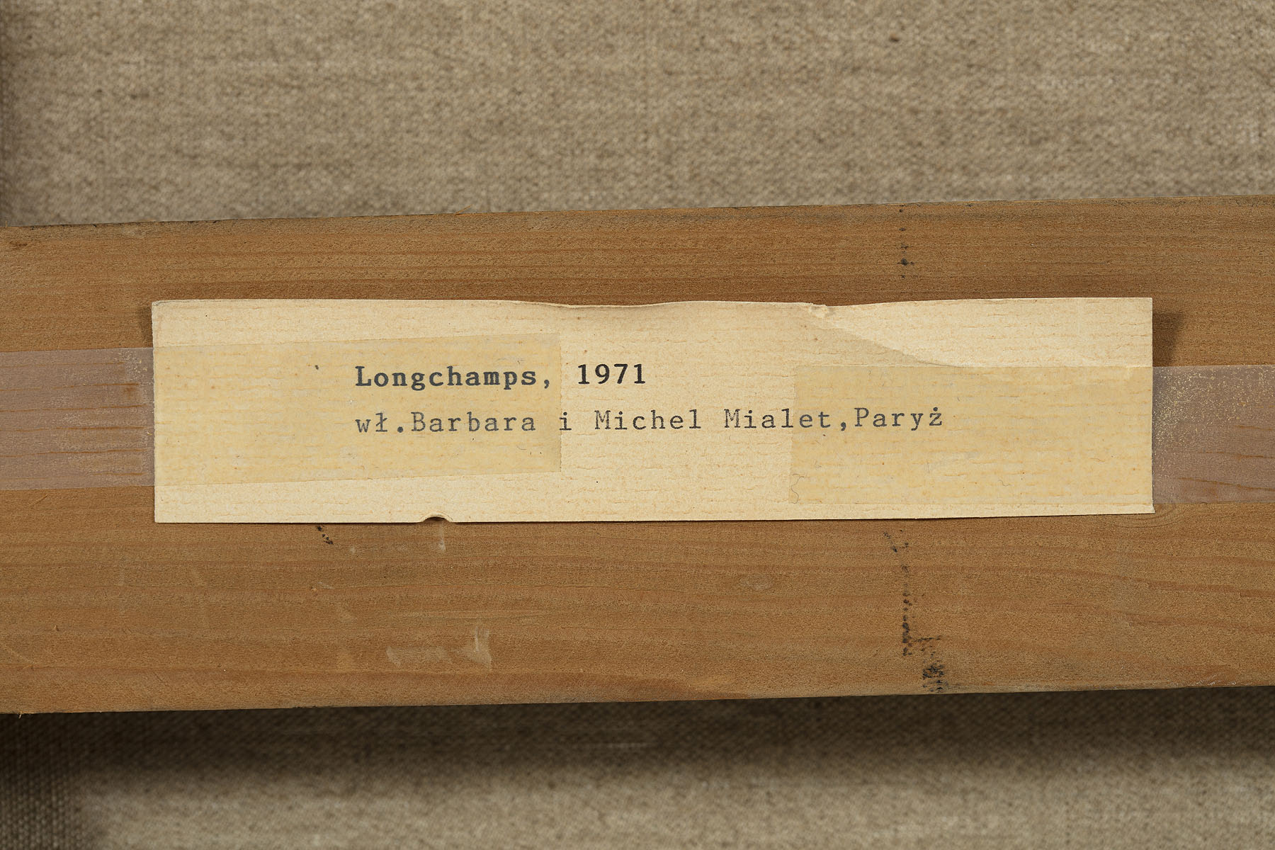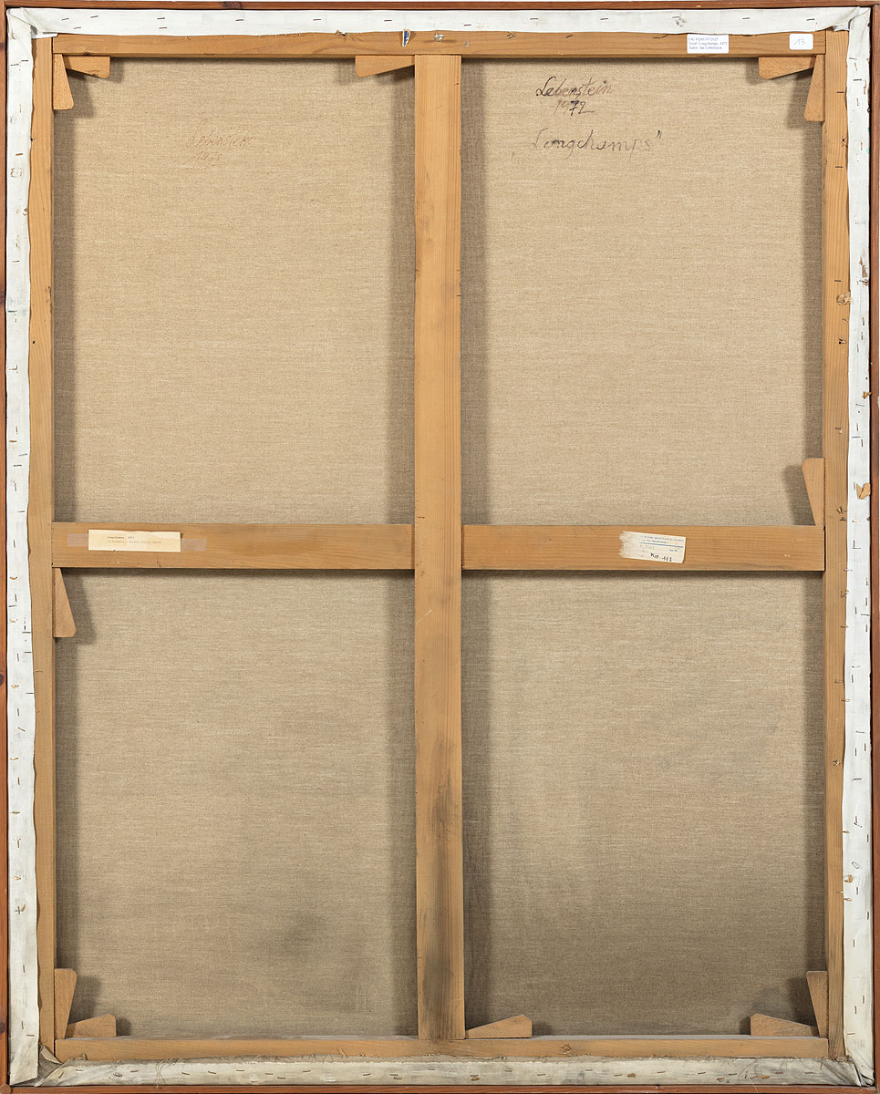 sygn. l.d.: Lebenstein 72 sygn. i opisany na odwrociu: Lebenstein / 1972 / "Longchamps", na blejtramie nalepka wystawy w Zachęcie i nalepka właścicielska