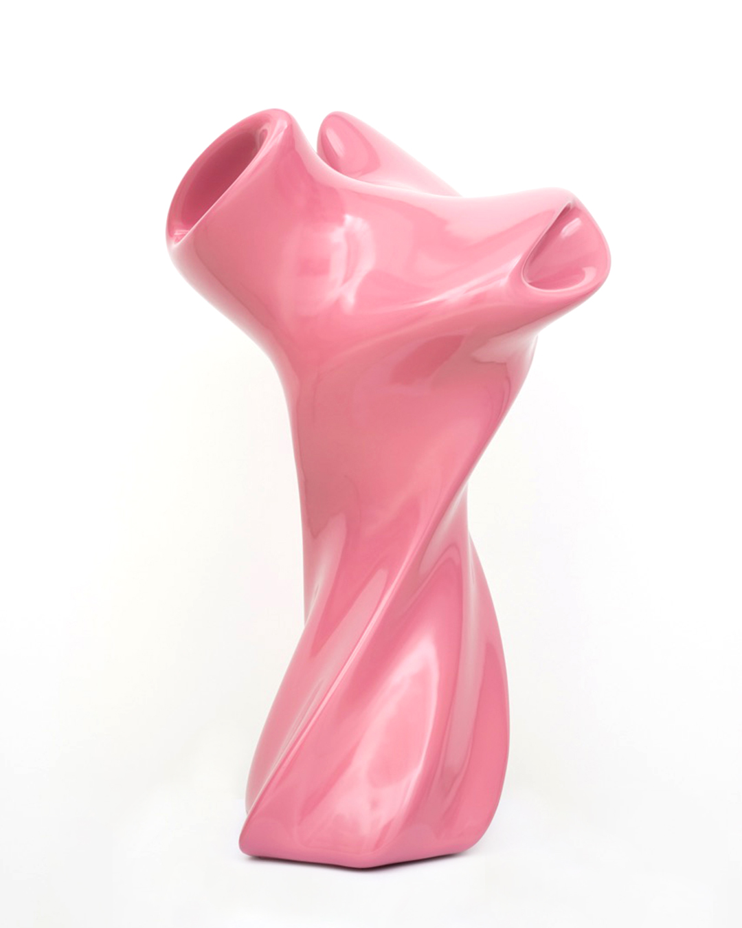 Prezentowana rzeźba Macieja Kasperskiego powstała w ramach jego ostatniego cyklu „Warstwy”, w którym artysta zestawiał ze sobą archaiczne techniki lepienia gliny z nowoczesnymi metodami druku 3D. Spiralnie skręcona forma „Motus Tortuosos” o intensywnie różowej, lśniącej powierzchni łączy organiczny ruch z precyzją technologicznej obróbki. W jej dynamicznej bryle można odnaleźć zarówno miękką tkankę biologiczną, jak i syntetyczny obiekt o niemal futurystycznym charakterze. „Według mnie interesujące jest pogranicze sztuki i techniki, związane z tym niuanse, zależności oraz wzajemne relacje. Momenty, w których następuje swoista wymiana energii między nimi. Czy i w jakim stopniu związane to będzie ze sztuką? – zastanawiał się Kasperski (Banaś B. [red.], Maciej Kasperski. Warstwy [katalog wystawy], Muzeum Narodowe we Wrocławiu, Wrocław 2022, s. 24). Artysta badał granice między przedmiotem użytkowym a obiektem rzeźbiarskim, między tradycją a nowoczesnością, poszukując „harmonii i logiki brył” oraz możliwości, jakie oferują współczesne technologie. Oferowana „Motus Tortuosos” jest wyrazem tych poszukiwań – rzeźbą, w której przenika się materialna energia gliny, pamięć dawnych technik i chłodna perfekcja tworzywa sztucznego, tworząc spójną opowieść o zmienności form i ich wzajemnych zależnościach.