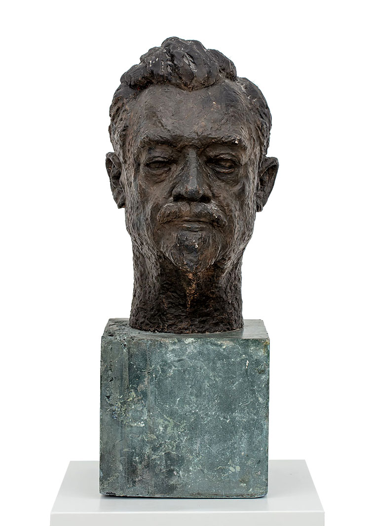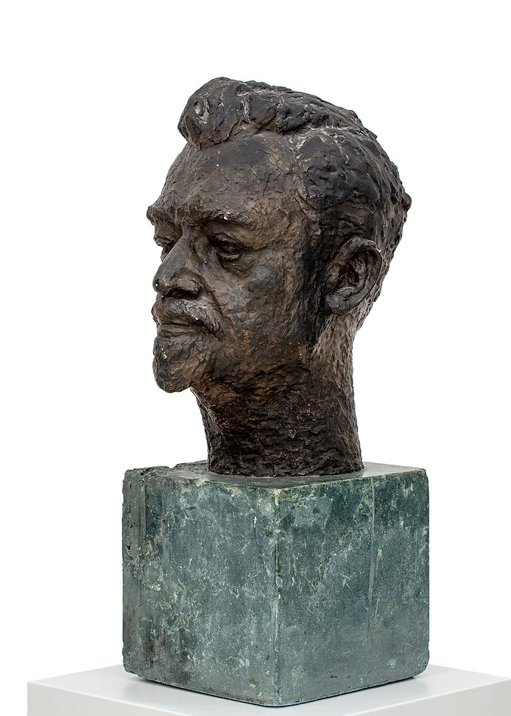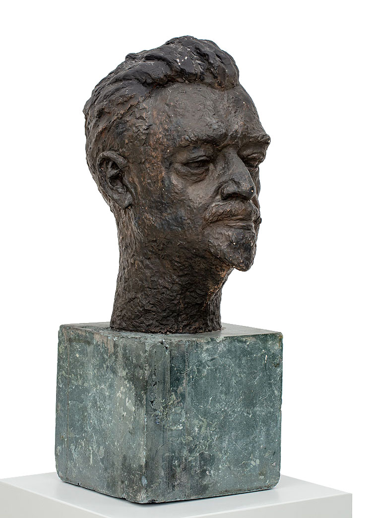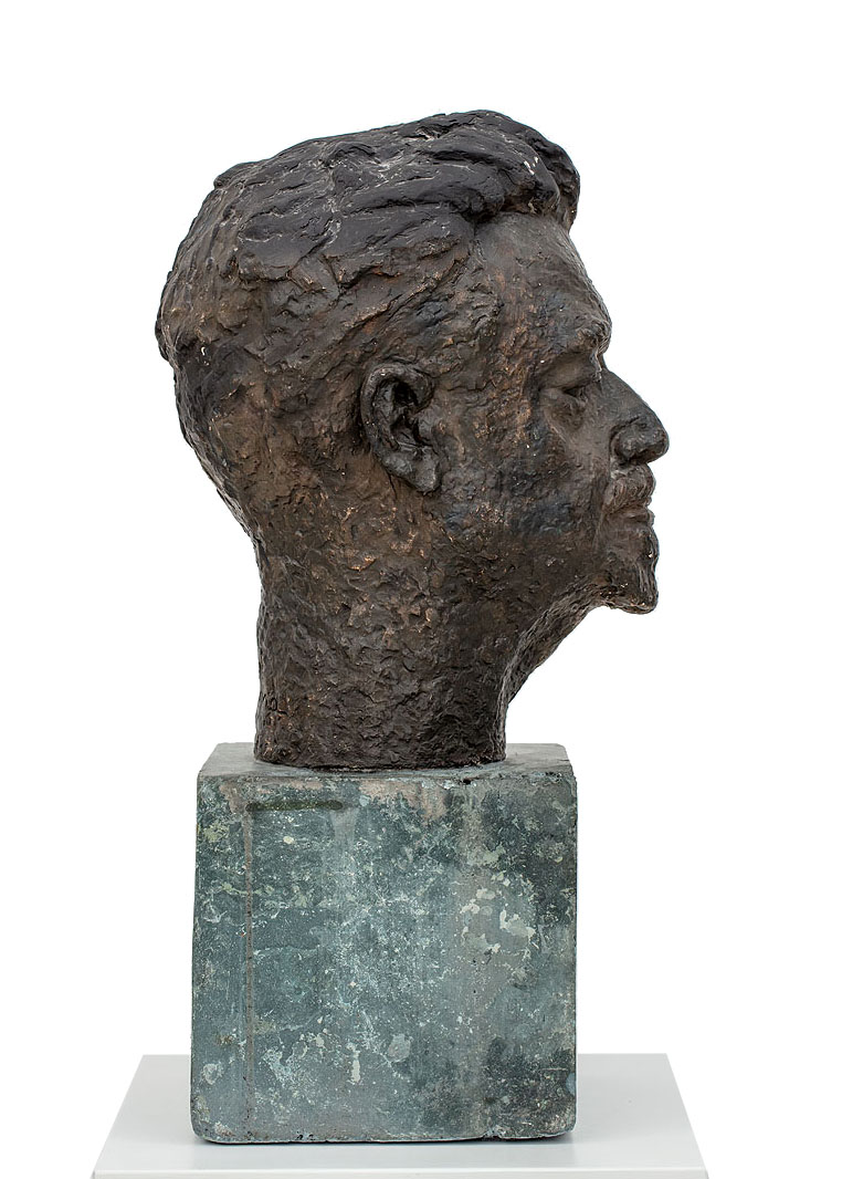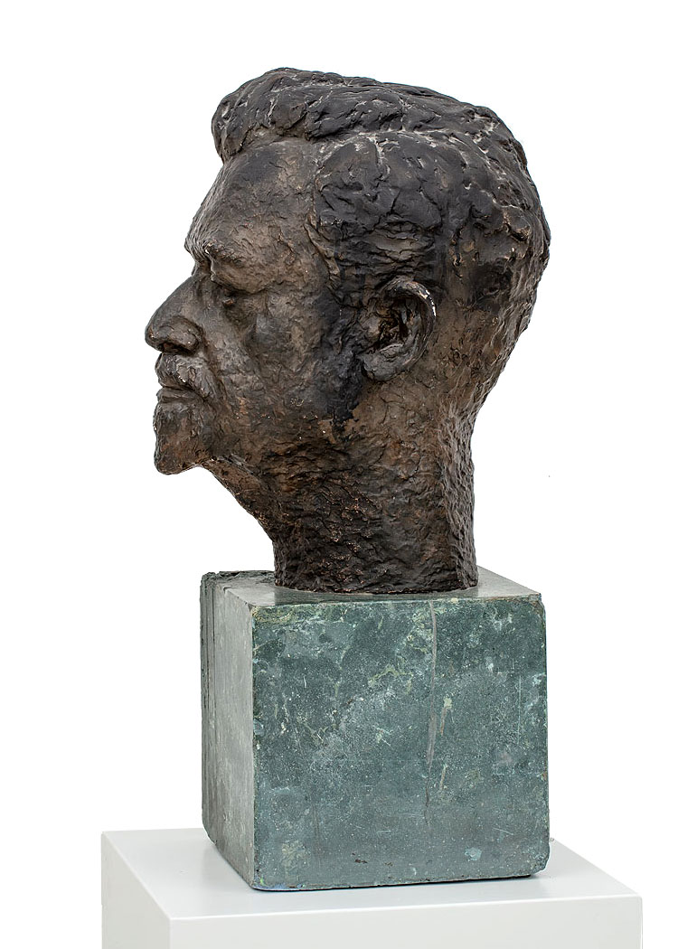 gips brązowiony, podstawa kamienna / wys. 47 cm (z podstawą 71 cm)