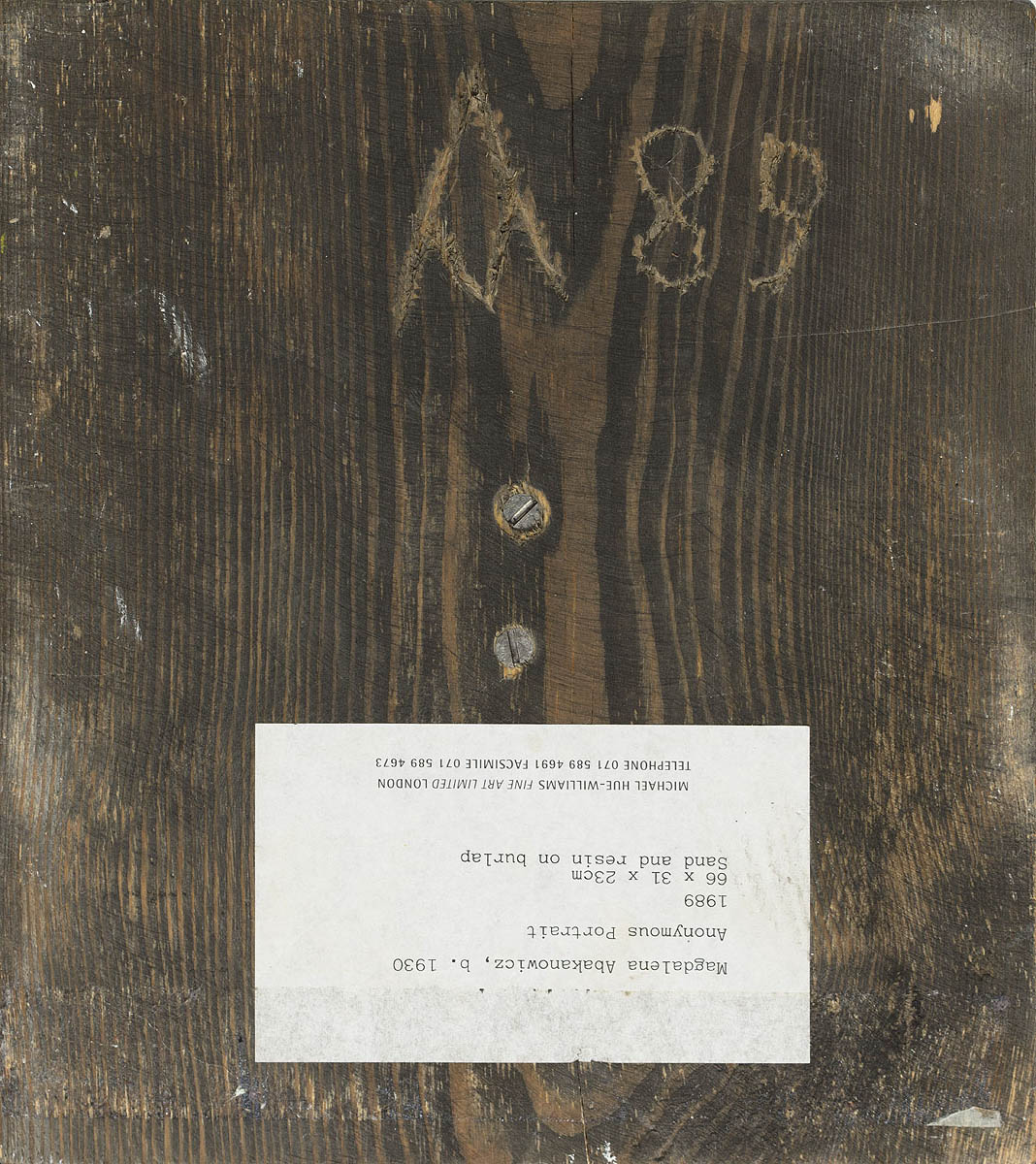 „Portrety anonimowe” to cykl prac obejmujący kilkadziesiąt portretów ludzkich wykonanych z bawełnianego płótna lub papierowej masy nasączonych żywicą. Ten rodzaj obrazowania pojawił się w twórczości Magdaleny Abakanowicz równolegle z maskami odlewanymi z brązu („Inkarnacje”) w połowie lat 80., i stanowił istotne novum w działalności artystki. Dotychczasowo bowiem Abakanowicz nie interesowała się bliżej wyglądem twarzy. Wprawdzie w roku 1976 wykonała w utwardzonej tkaninie dwa portrety, a od roku 1981 powstawał również cykl rysunków, w których interpretowała ten motyw, to jednak do momentu pojawienia się „Portretów anonimowych” oraz „Inkarnacji”, można śmiało powiedzieć, kategoria portretu nie istniała w twórczości artystki. „Teraz wizerunki ludzi i zwierząt stają się dla Abakanowicz jednym z ważniejszych zagadnień twórczych. Uproszczone i zdeformowane, naturalnej wielkości głowy stoją na prostych wysokich podpórkach z metalu lub drewna. Stoją w pozycji jakby przymusowej, chwilowej, niewygodnej, nawet zagrażającej. Jak we wszystkich pracach Abakanowicz, podstawa stwarza sytuacje, w której rzeźba egzystuje, tworzy jej kontekst i jest tak nieodłączną jej częścią jak nogi utrzymujące korpus” – pisał Mariusz Hermansdorfer w 1995 roku (Hermansdorfer M., Magdalena Abakanowicz, Wrocław, 1995, s. 20). „Portrety anonimowe” to twarze pozbawione indywidulnych rysów, niekiedy nawet zatarte, zawieszone gdzieś pomiędzy wizerunkiem człowieka a abstrakcyjną formą powierzchni. Nie stanowią one pełnoplastycznego przedstawienia głów, typowych obiektów rzeźbiarskiego studium. Eksplorują wyłącznie powłokę samej twarzy, zwracając tym samym naszą uwagę na ludzką osobowość, na istnienie wyrażone przez anonimowy a zarazem uniwersalny portret. U źródła „Portretów anonimowych” znajduje się jednak twarz samej artystki. Abakanowicz odciskała ją w ciekłym wosku. O rezultatach tych działań mówiła: „ (…) odsłaniają [one] wewnętrzny chaos wnętrza ukrywanego za żywą twarzą. Uciekam od każdej, sięgając po następną (…). Na skórze, we włosach, w ruchu powietrza zapach gorącego wosku. Nosiłam go w sobie jeszcze wiele dni po zakończeniu kolejnego etapu pracy. Wywołuje on obrazy, przeistacza każdy inny zapach” (Magdalena Abakanowicz. Cysterna [katalog wystawy], Ślazińska M. [red.], Warszawa 2008, s. 102). Doświadczenie pozostawiania własnego śladu w materii wosku, czy – jak w przypadku „Portretów anonimowych” – bawełnianej tkaninie czyni z tych portretów akt twórczy o niezwykle osobistym rysie. Mają one, wobec szerszego kontekstu artystycznych działań Magdaleny Abakanowicz, wymiar również symboliczny. Wraca bowiem temat indywidualności i multiplikacji. Portret – gatunek sam z siebie oddający indywidualizm jednostki – staje się tu punktem wyjścia do działania o charakterze seryjnym. Z jednej strony artystka nadaje odciskowi rysy jednostkowe, z drugiej zaś powtarza je jakby chcąc ów indywidualizm zatrzeć.