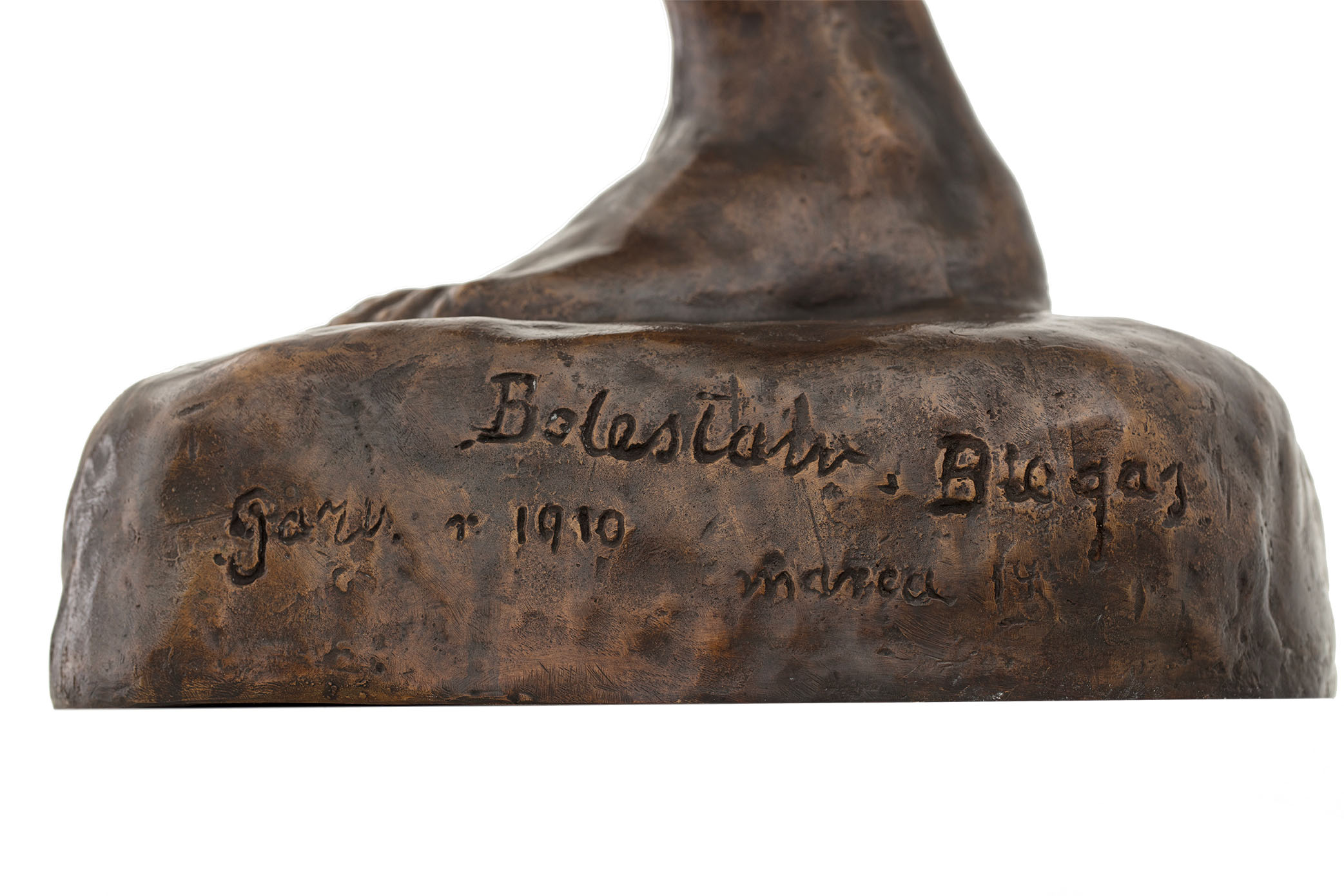 sygn. u dołu po prawej: Bolesław Biegas / Paris r. 1910 / marca 19… [nieczytelnie] po lewej: pieczęć odlewnika: T. ROSS oraz 4/8; oraz na przodzie: Ewa ed. 4/8