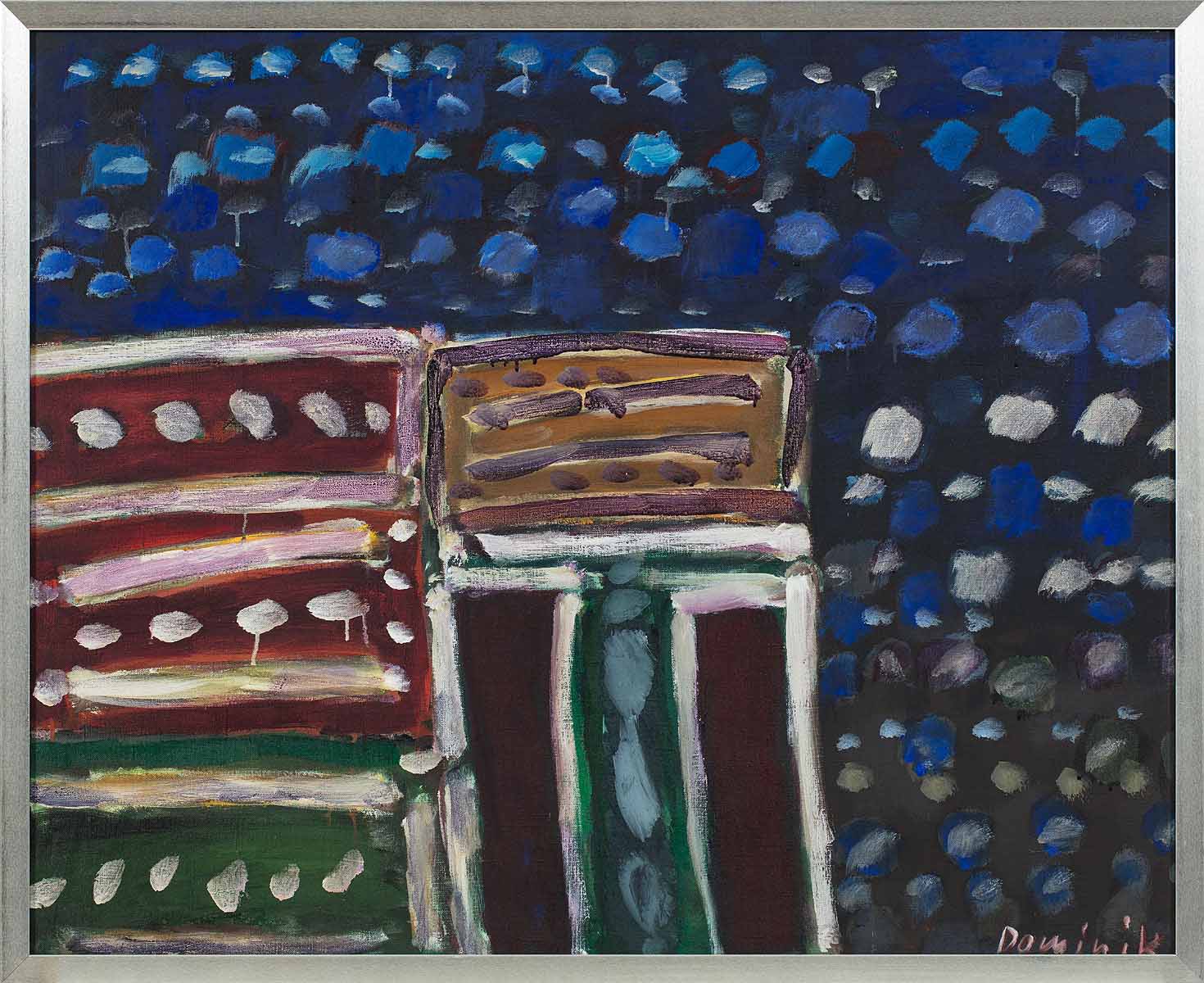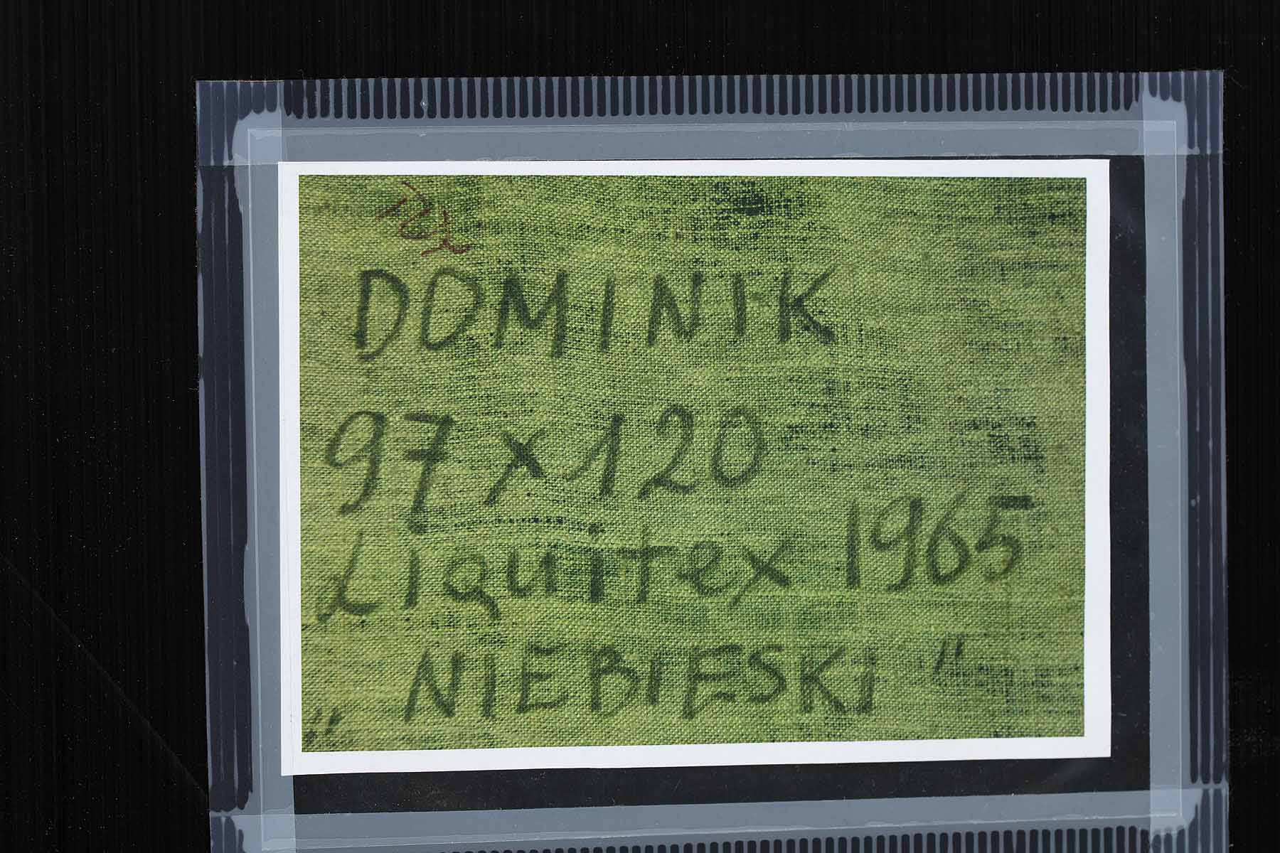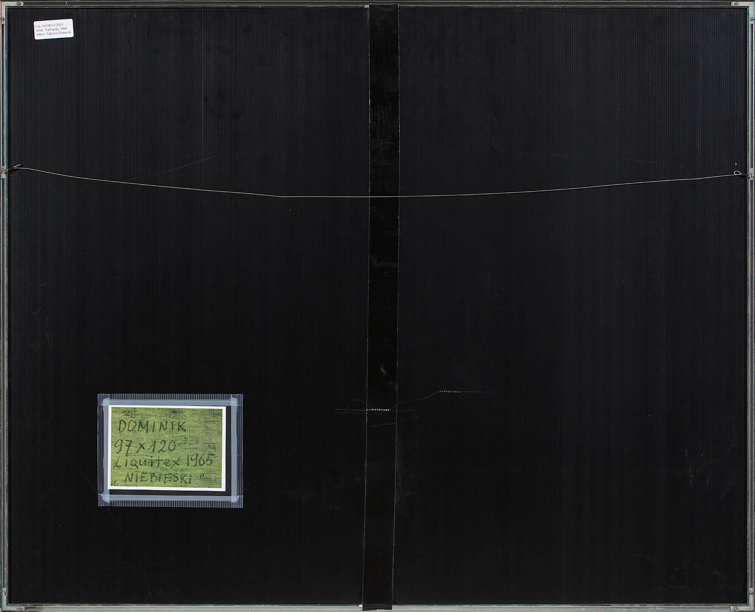 sygn. p.d.: Dominik, sygn. i opisany na odwrociu: DOMINIK / 97 x 120 / Liquitex 1965 / "NIEBIESKI"