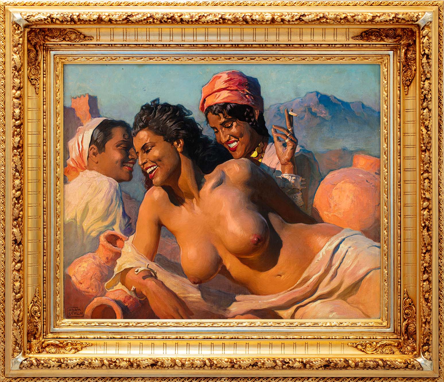 Adam Styka to jeden z najlepszych polskich orientalistów. Pochodził z rodziny artystycznej – jego ojcem był wybitny malarz Jan Styka, autor Panoramy Racławickiej, a starszy brat Tadeusz zasłynął jako wzięty portrecista polskich i zagranicznych elit. Adam urodził się w 1890 roku i w dzieciństwie nie przejawiał zainteresowania sztuką – z resztą ojciec powtarzał, że „nie potrzeba trzech Styków malarzy” (Czapliński Cz., The Styka Family Saga. Saga Rodu Styków, Bicentennial Publishing Corporation, New York, 1988, s. 135). Po ukończeniu szkoły średniej, poświęcił się inżynierii i matematyce. Jednak z czasem zapałał chęcią do malowania, co entuzjastycznie opisywał ojcu w listach. „Kiedy Adaś przybył na Święta Bożego narodzenia [1908], powiedziałem mu, że »to nie dosyć chcieć, ale trzeba móc i wypróbujemy, czy masz talent«. Adaś miał szczególnie łatwość do pejzażu, ale mu powiedziałem: Z tym daleko nie zajedziesz, trzeba rysować twarze ludzi” – wspominał Jan Styka (fragment pamiętnika J. Styki, [w:] Czapliński Cz., dz. cyt., s. 136).