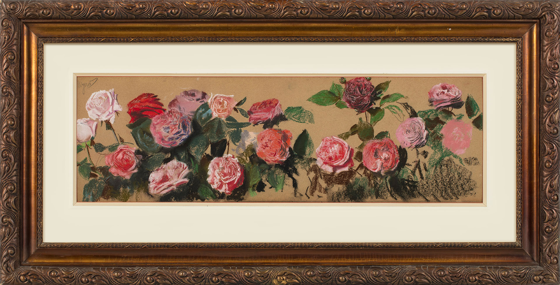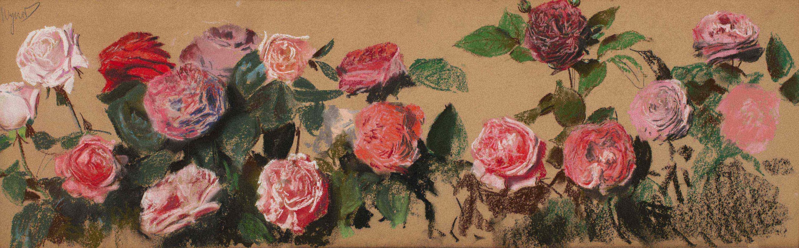Z kolei Feliks Manggha-Jasieński, słynny kolekcjoner, zaszczepił w Wyczółkowskim fascynację estetyką japońską. Znalazła ona początkowo wyraz w zamiłowaniu artysty do orientalnych rekwizytów – kimon, parawanów, makat i porcelany. Następnie w jego martwych naturach pojawiły się zapożyczone z japońskich drzeworytów elementy formalne – koncentracja na fragmentarycznie ujętym motywie roślinnym, asymetryczna równowaga kompozycyjna, wykorzystanie neutralnej płaszczyzny tła. Jednym z ulubionych tematów Wyczółkowskiego były martwe natury kwiatowe, ujmowane w rozmaitych konwencjach i wciąż ewoluujące stylistycznie. Obok kompozycji ascetycznych w wyrazie, opartych na kontrapunkcie dwóch barw, artysta rysował pastelami intensywne kolorystycznie bukiety w zdobnych wazonach, ustawionych na tle wzorzystych tkanin.