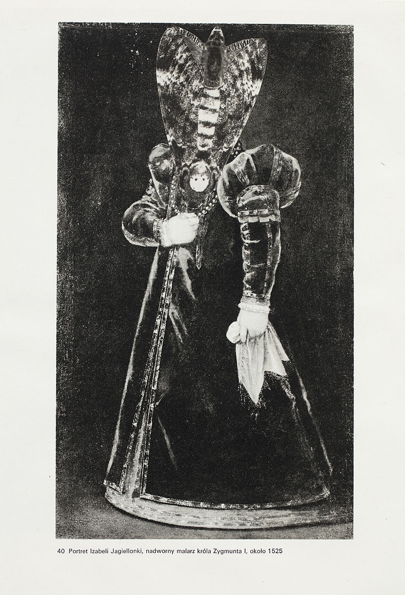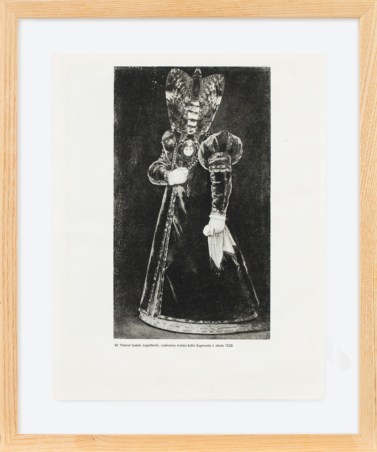 Dzieła, jakie przyniosły Ewie Juszkiewicz zdecydowanie największą sławę i międzynarodowy rozgłos to jej portrety kobiet, w których – paradoksalnie – twarz nie odgrywa roli. Artystka reinterpretuje klasyczne, żeńskie przedstawienia, znane z historii malarstwa od renesansu po XIX wiek i zamiast odwzorowywać oblicza modelek, zakrywa je splątanymi włosami, koronkami, a nawet surrealistycznymi strukturami z muszli czy mykobioty. W oferowanej pracy artystka sięga tym razem po inne medium – kolaż. Wykorzystując wyrwaną ze starego albumu ilustrację, dokonuje na niej interwencji, zmieniając kontekst przedstawienia. Czarno-biała reprodukcja ukazująca historyczny portret kobiecy, przekształca się w surrealistyczną wizją Juszkiewicz: w miejscu twarzy pojawiają się wycięte z fotografii elementy fauny. Ten zaskakujący zabieg, choć formalnie prosty, otwiera pole dla nowych interpretacji. Podobnie jak w malarstwie, artystka odbiera portretowi jego oczywistość i „znany porządek”, aby ukazać alternatywę – wizerunek, który nie odzwierciedla, lecz wyraża. Prezentowany kolaż potwierdza konceptualny charakter twórczości Juszkiewicz, w której zawłaszczenie i dekonstrukcja stają się narzędziami krytyki. Twarz – tradycyjnie traktowana jako centrum tożsamości – znika, a jej miejsce zajmuje organiczna maska. Praca balansuje na granicy piękna i groteski, przywołując skojarzenia z gabinetem osobliwości, ale też otwierając przestrzeń dla refleksji nad ograniczeniami dawnych kanonów kobiecego portretu. To swoista „miniatura” całej koncepcji artystki – pokazuje, że także w formie kolażu można budować nowe narracje, które demaskują opresyjny charakter tradycyjnych przedstawień i proponują inną, wolną od schematów ikonografię kobiecości.
