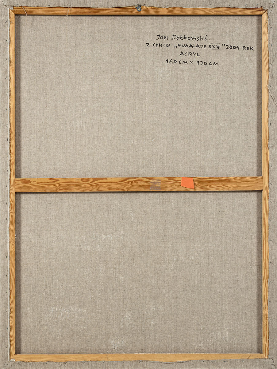 sygn. i opisany na odwrociu: Jan Dobkowski / Z CYKLU „HIMALAJE XXV” 2004 ROK / ACRYL / 160 CM x 120 CM