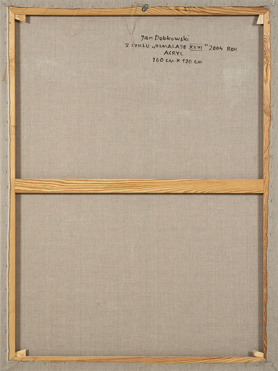 sygn. i opisany na odwrociu: Jan Dobkowski / Z CYKLU „HIMALAJE XXVI” 2004 ROK / ACRYL / 160 CM x 120 CM