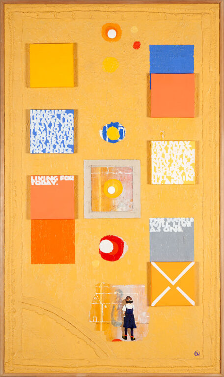 olej, akryl, kolaż, płótno, plexi / 103 x 173 cm