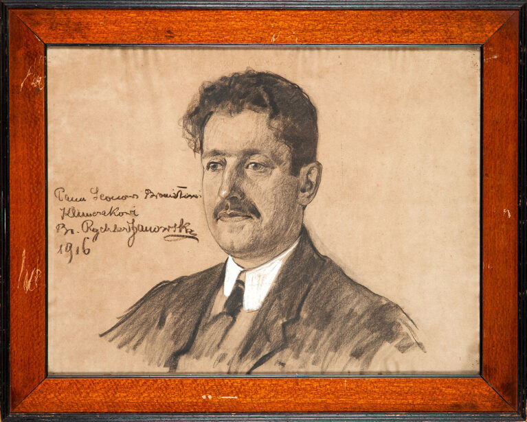 węgiel, biała kreda, papier naklejony na tekturę / 48 x 63 cm